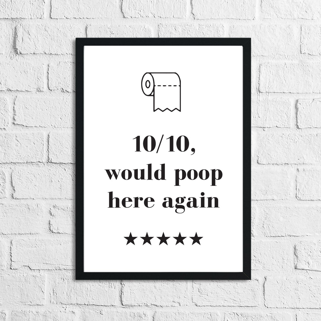 10/10 Would Poop Here Again Funny Bathroom Wall Decor Print
