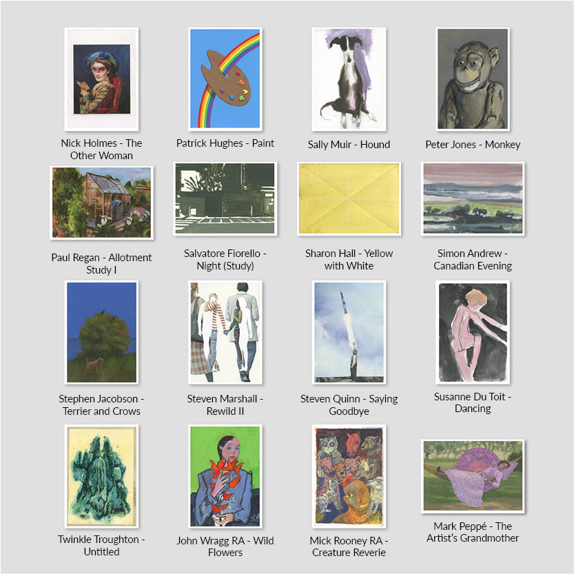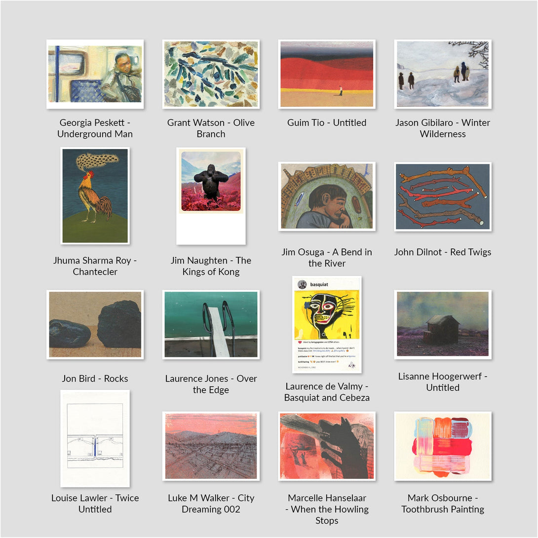 Adam Lupton - Untitled, Agathe De Bailliencourt - Petit-je m'en fous 27, Alan Fears - Cutting Some Rug, Annette Fernando - You Never Knew, Becky Allen - Untitled, Brian Fencl - Men with Bust of John Stuart Mill, Chris Agnew - Cape Fear, Ceal Warnants - Bambi(no), Claudia De Grandi - Horizons, Darren Reid - Pacific Coast Highway, David Harrison - Vampire Cat, Duncan Grant - Progress, Edd Pearman - Puddelbal, Emma Forrester - Flowers II, Erkan Uyar - Untitled, Faye Moorhouse - Seven Legged Beast, Georgia Peskett - Underground Man, Grant Watson - Olive Branch, Guim Tio - Untitled, Jason Gibilaro - Winter Wilderness, Jhuma Sharma Roy - Chantecler, Jim Naughten - The Kings of Kong, Jim Osuga - A Bend in the River, John Dilnot - Red Twigs, John Wragg RA - Wild Flowers, Jon Bird - Rocks, Laurence de Valmy - Basquiat and Cebeza, Laurence Jones - Over the Edge, Lisanne Hoogerwerf - Untitled, Louise Lawler - Twice Untitled, Luke M Walker - City Dreaming 002, Marcelle Hanselaar - When the Howling Stops, Mark Osbourne - Toothbrush Painting, Mark Peppé - The Artist's Grandmother, Mick Rooney RA - Creature Reverie, Nick Holmes - The Other Woman, Patrick Hughes - Paint, Paul Regan - Allotment Study I, Peter Jones - Monkey, Sally Muir - Hound, Salvatore Fiorello - Night (Study), Sharon Hall - Yellow with White, Simon Andrew - Canadian Evening Landscape, Stephen Jacobson - Terrier and Crows, Steven Marshall - Rewild II, Steven Quinn - Saying Goodbye, Susanne Du Toit - Dancing, Twinkle Troughton - Untitled |