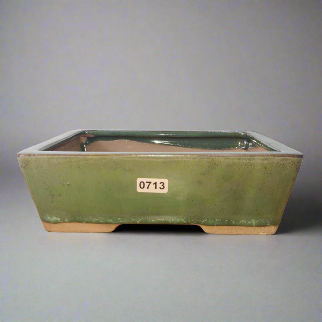 22cm Glazed Bonsai Pot | Rectangle | 22cm x 17cm x 7cm | Green