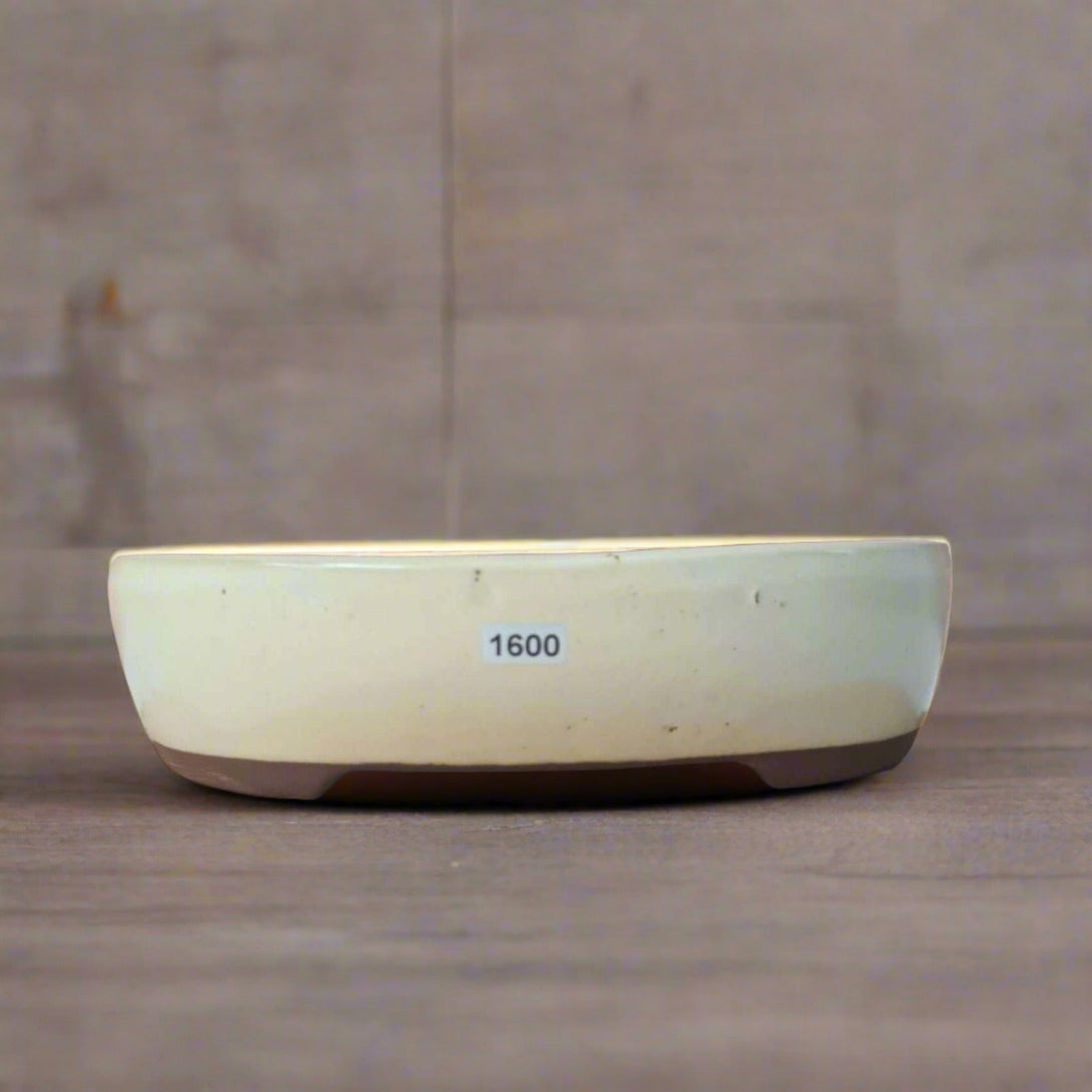 26cm Glazed Bonsai Pot | Oval | 26cm x 22cm x 6.5cm | White / Cream