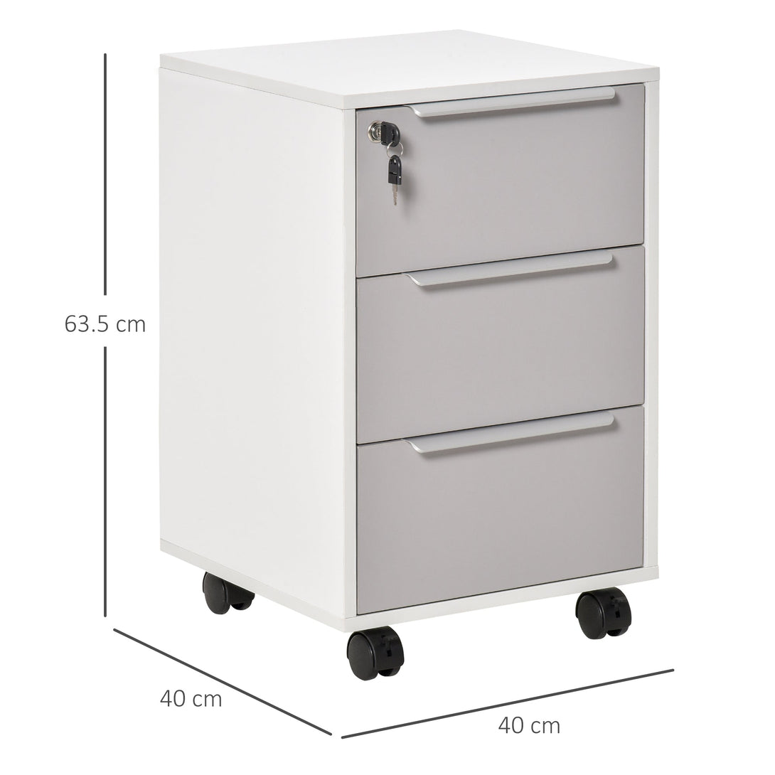 3-Drawer Locking File Cabinet Mobile Chest of Drawers Side Table on Wheels