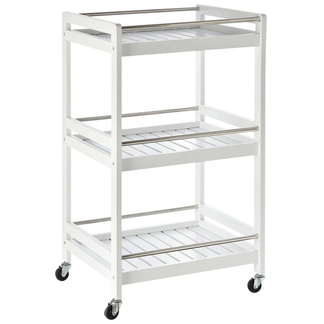 3-Tier Home Trolley Kitchen Storage Cart w/ Steel Bars 4 Universal Wheels Rolling Unit Organiser Living Room White