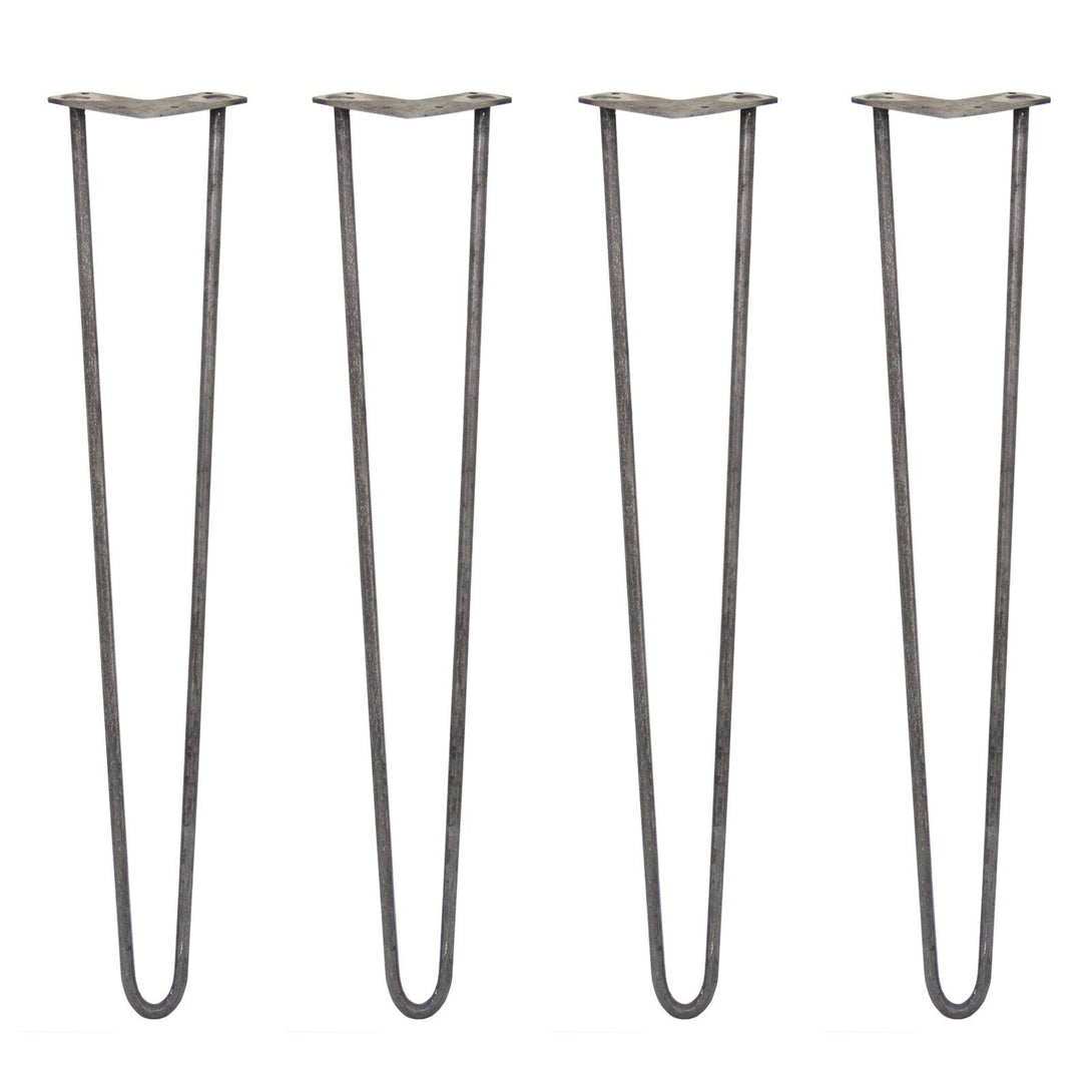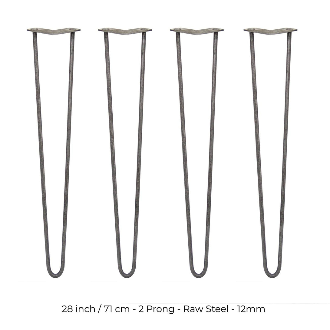 4 x 28" Hairpin Legs - 2 Prong - 12mm - Raw Steel