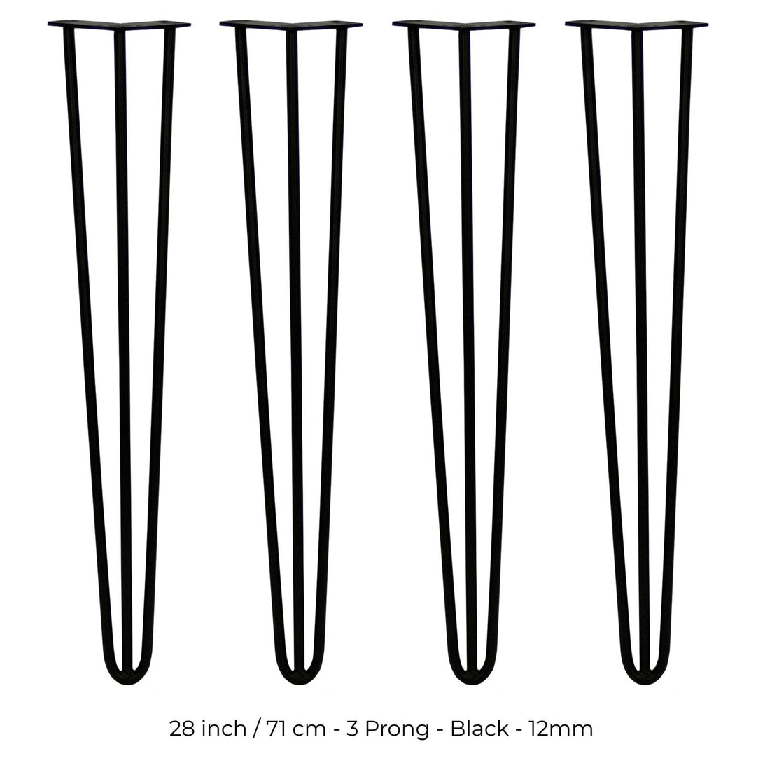 4 x 28" Hairpin Legs - 3 Prong - 12mm - Black