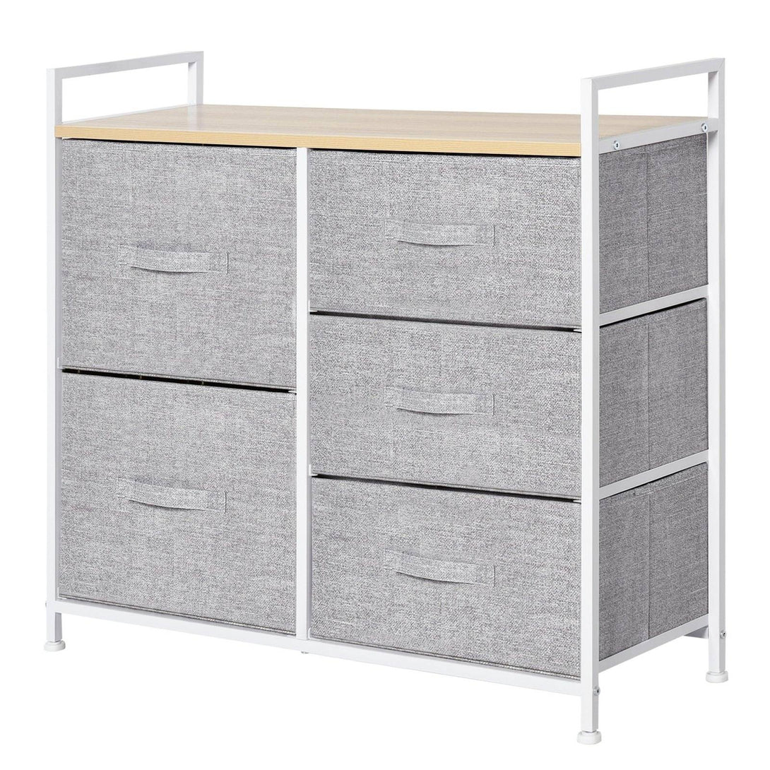 5 Drawer Linen Basket Storage Unit Home Organisation w/ Shelf Handles Metal Frame Adjustable Feet Hallway Home Dresser Grey