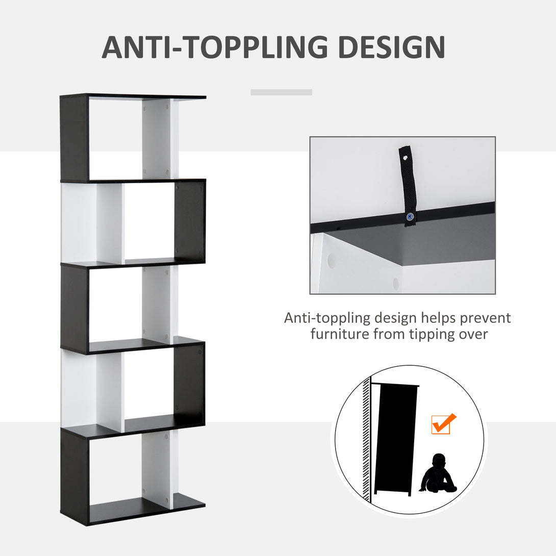 5-tier Bookcase Storage Display Shelving S Shape design Unit Divider Black