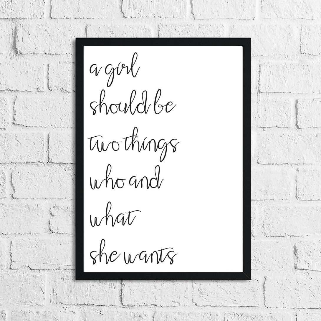 A Girl Should Be Two Things Inspirational Simple Wall Home Decor Print
