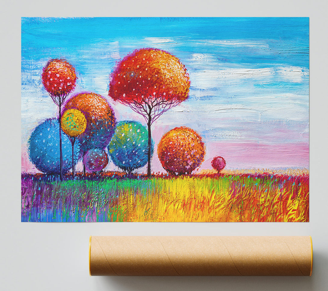 Our A Group Of Trees In Spring Poster is printed 260 GSM premium lustre paper that offers vibrant colours and exceptional detail.