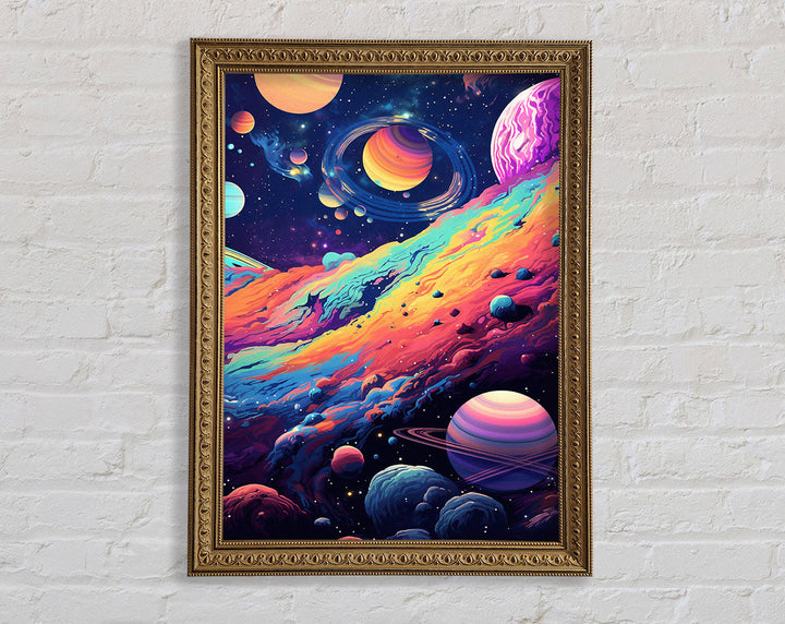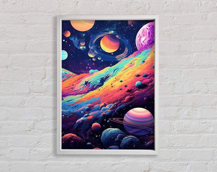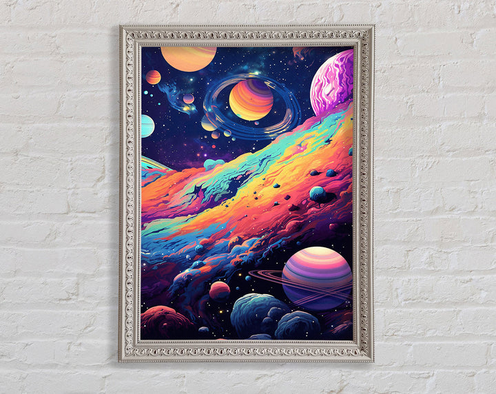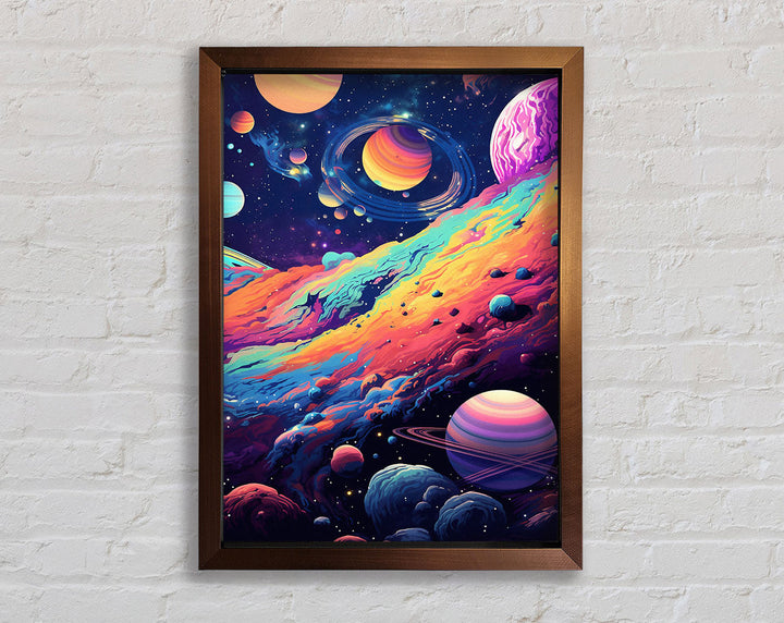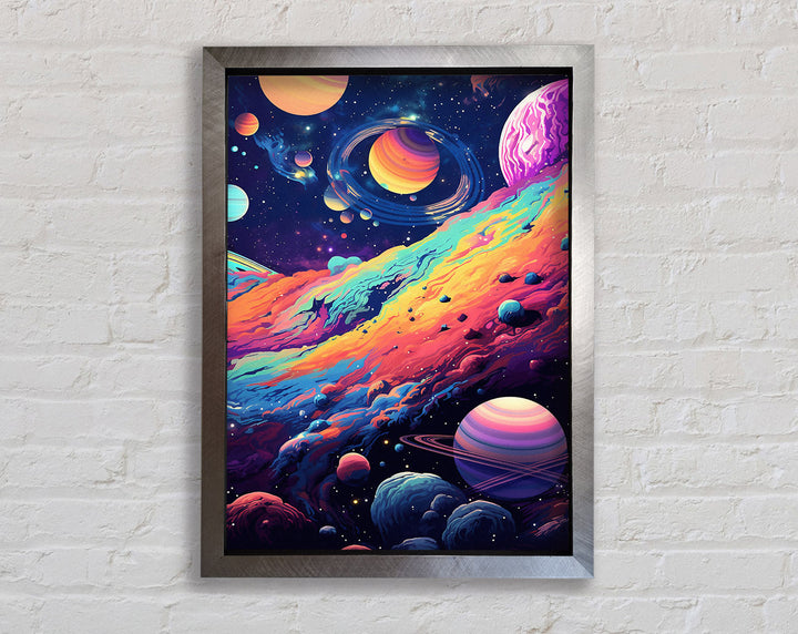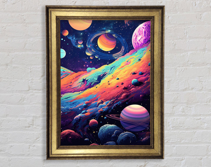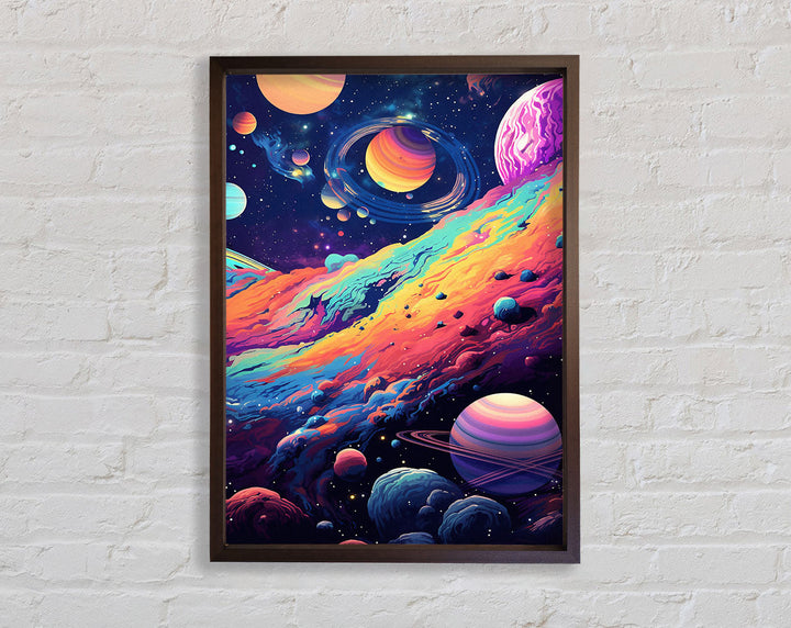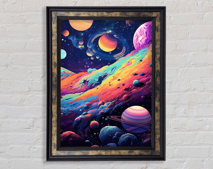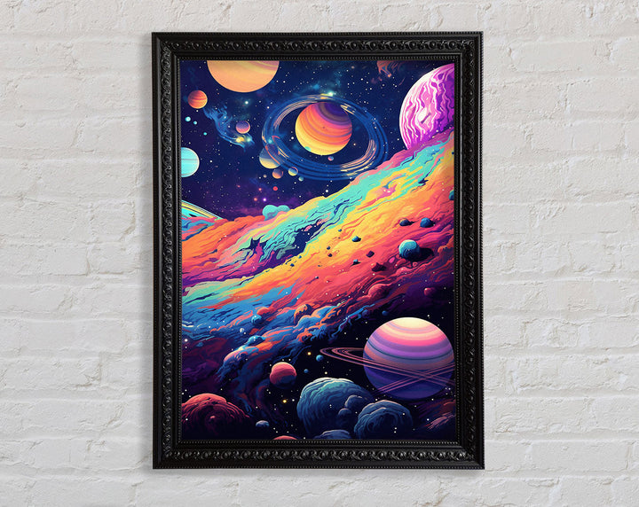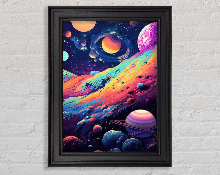 Introducing the Acid Planets Atmosphere Framed Print, a stunning piece of framed art that brings the mysteries of outer space into your home. This unique print captures the vibrant, swirling colors of distant planets' atmospheres, making it a perfect conversation starter. Available in six sizes, from small to oversized, you can find the perfect fit for any space. Choose from a variety of colors to match your decor. Each piece is handmade in the United Kingdom, ensuring high quality and craftsmanship. Ready to hang right out of the box, this framed art makes decorating easy and stylish. Elevate your living space with the Acid Planets Atmosphere Framed Print today!
