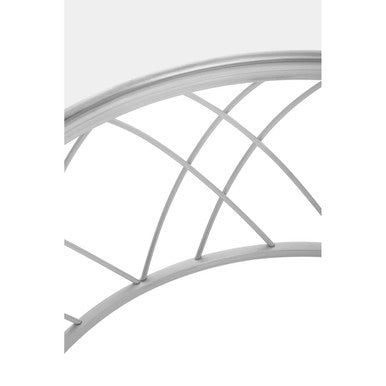 Make a modern statement with your decor. The Ackley coffee table has a clear glass top and patterned silver frame. The geomertic patterns of the sleek metallic lines add texture and depth to interior. Hastle of the frame is perfectly complemented by the clear glass top.