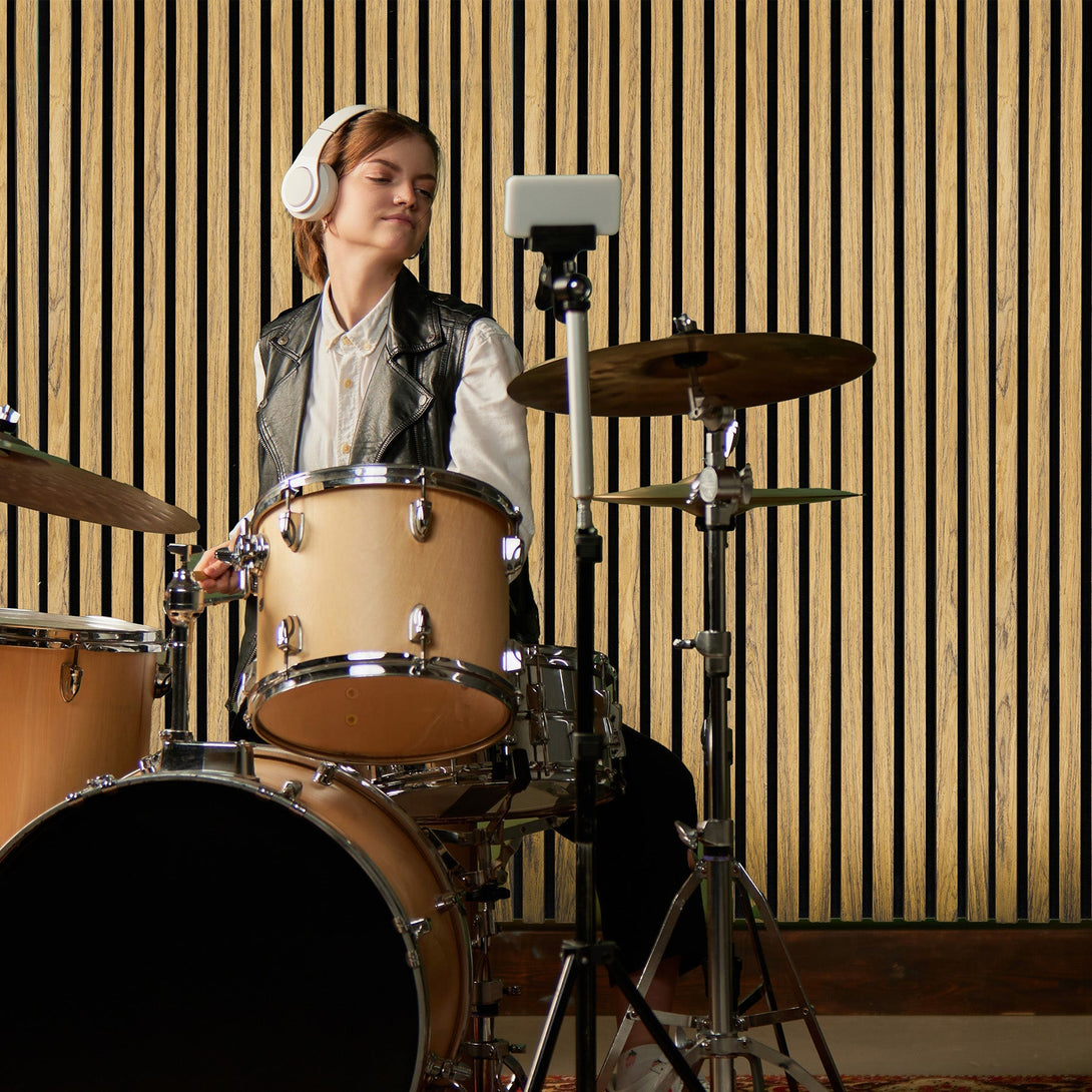 Crafted with precision, the slats are made of durable MDF topped with a high-quality veneer that replicates the warm, timeless appeal of natural oak wood. Each slat is paired with a 9mm thick felt backing that is not only highly effective at reducing noise but also flame retardant for added safety. The individual slats are 27mm wide and 12mm deep, with 13mm spacing, giving a modern, uniform look that complements any decor. The carefully chosen materials ensure both visual appeal and long-lasting performance.