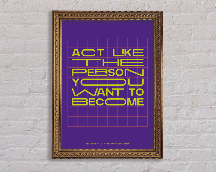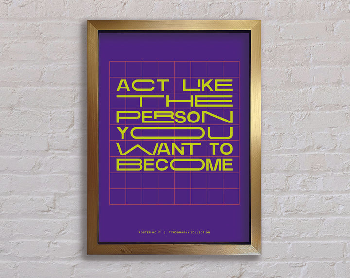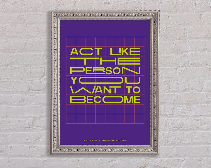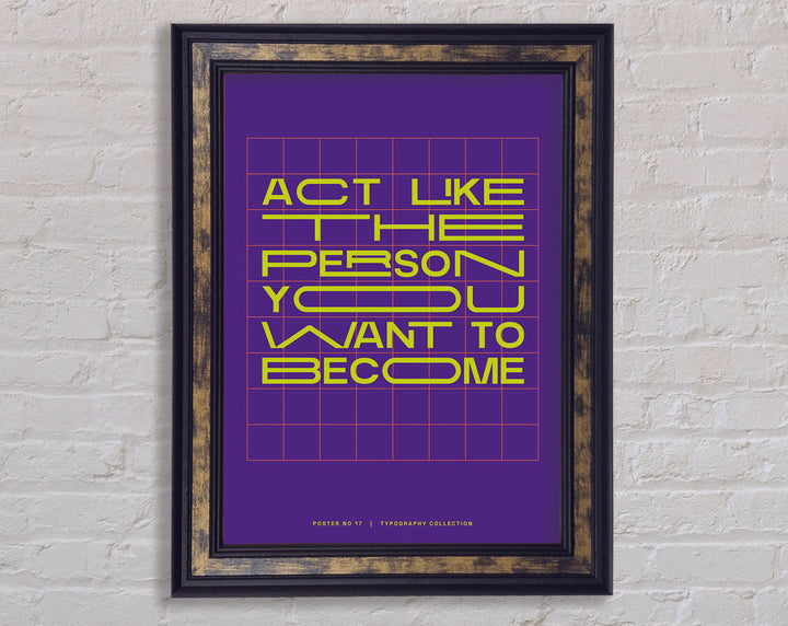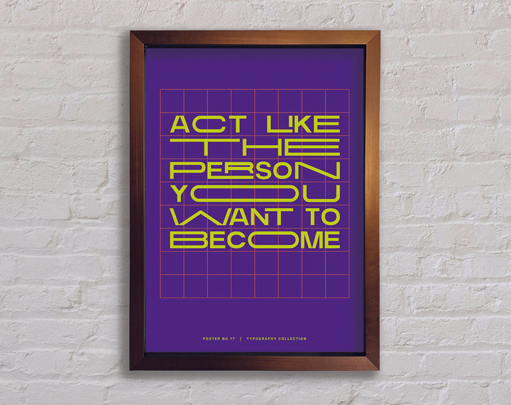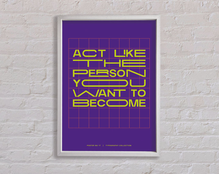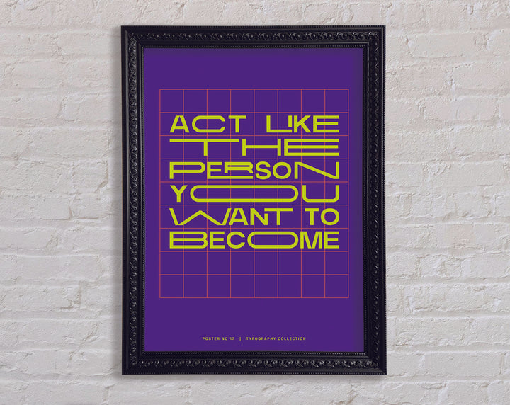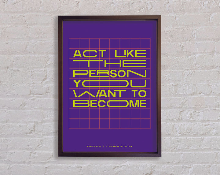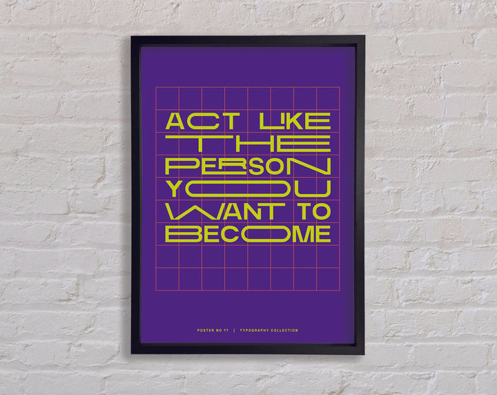 Transform your living space with the "Act Like The Person You Want To Become" framed print, a perfect blend of inspiration and elegance. This framed art piece is available in 6 sizes, ranging from small to oversized, making it easy to find the perfect fit for any room. Choose from a variety of colors to match your personal style and home decor. Handmade with care in the United Kingdom, each print is crafted with quality materials and attention to detail. Ready to hang upon arrival, this framed print not only adds aesthetic value but also serves as a daily motivational reminder. Enhance your environment and inspire your journey with this beautiful and meaningful piece.