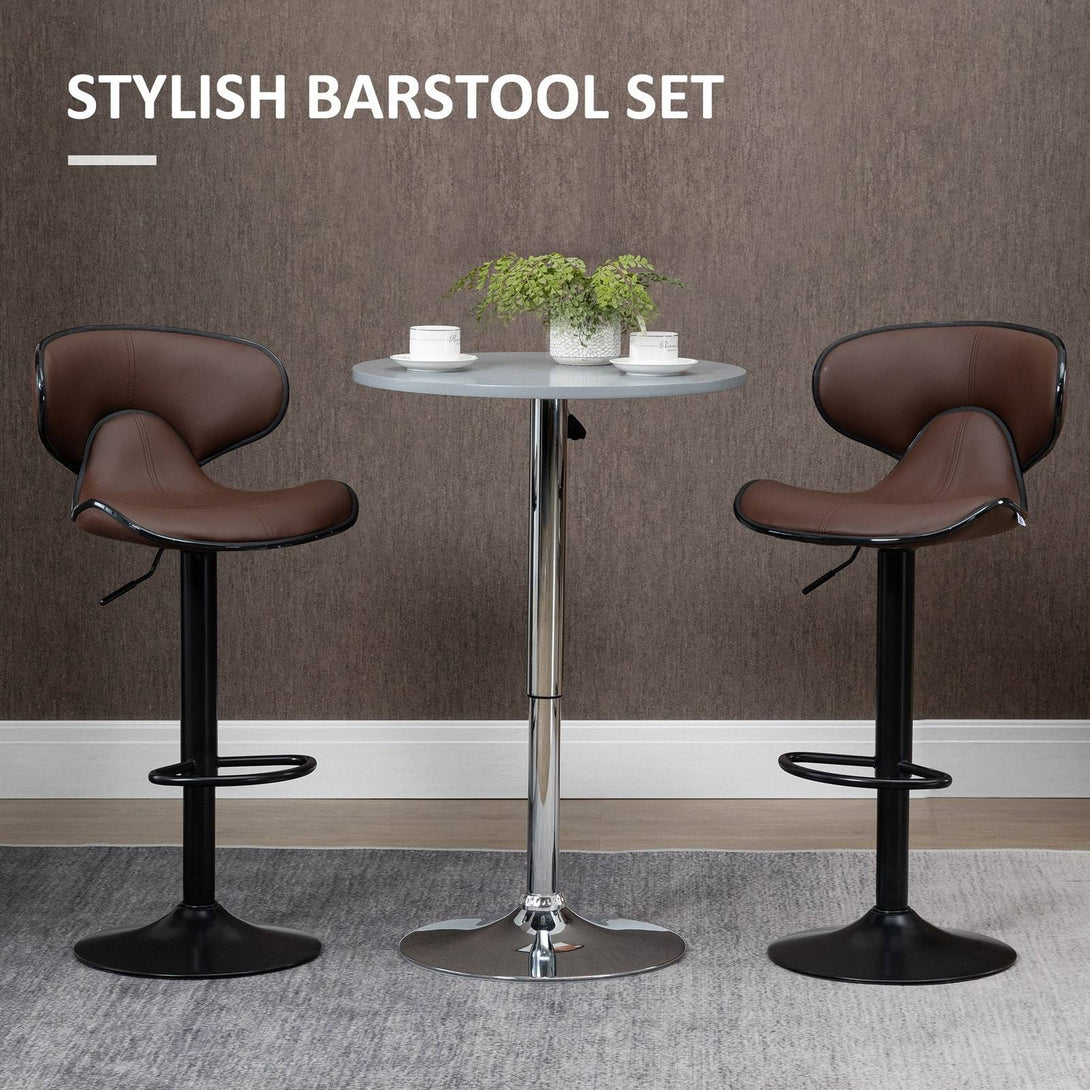 Inject beautiful and chic style into your kitchen counter or bar dining area with the kitchen stools with backs from HOMCOM. In a set of two, you'll instantly create a matching look in the home. The seat comes in a with-back, 360° swivel and gas lift design allowing you to sit comfortably. Skin-friendly PU material upholstery of the adjustable stool serves up high style. Additionally, the powder-coated steel frame ensures they can accompany your family reliably.