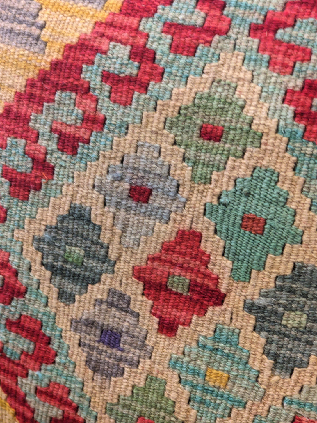 Each Afghanistan Kilim Cushion Cover is a one of a kind creation made from vintage tribal kilims. Bold geometric patterns and earthy tones bring a touch of tradition and timeless charm to any setting. Crafted from pure wool with a sturdy cotton backing, they blend rustic texture with rich cultural history. Perfect for adding warmth character and story to your home.