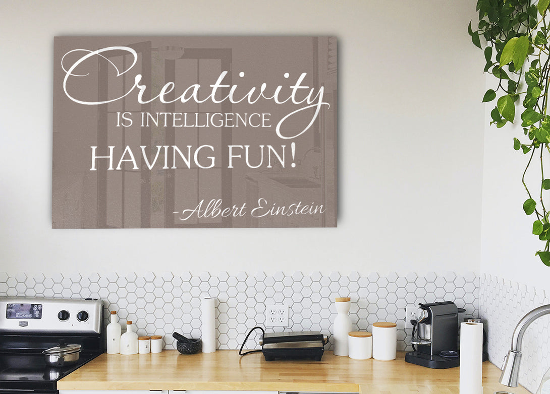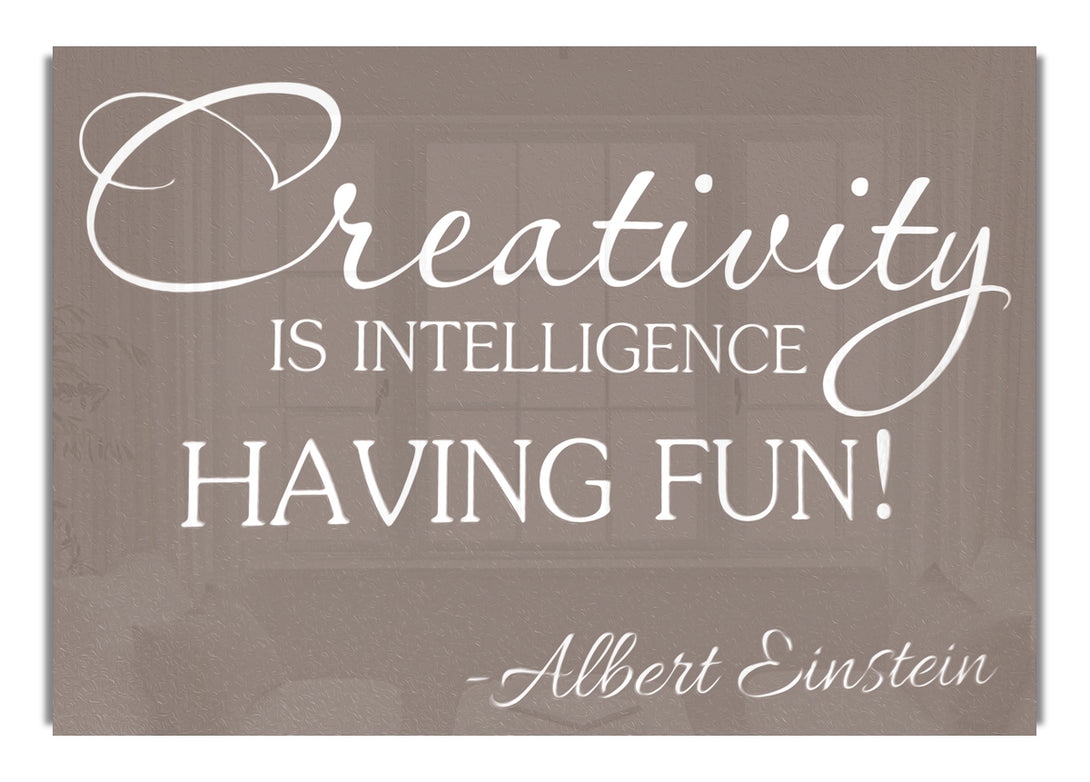 Albert Einstein Creativity Is Intelligence Beige acrylic print, UV printed onto 5mm thick acrylic glass. Comes with everything you need to hang on your wall.