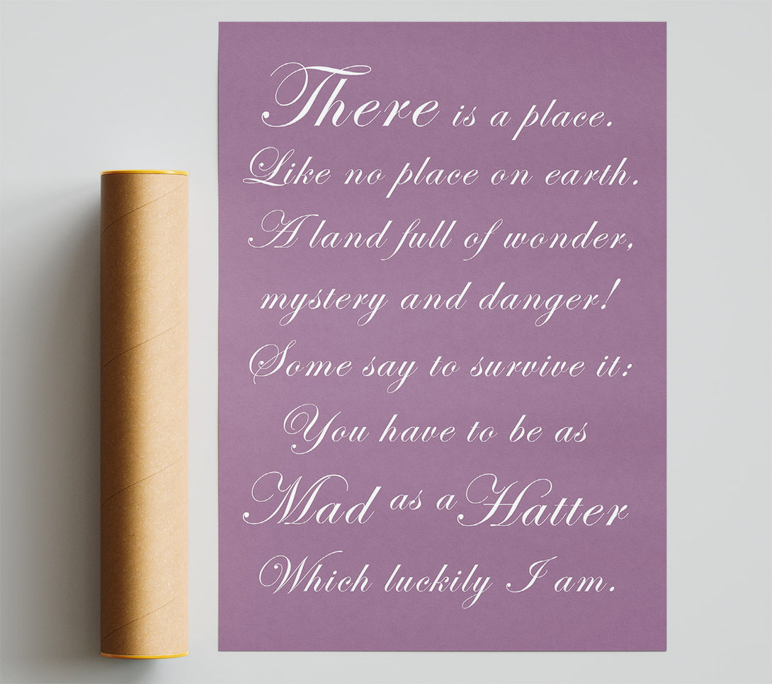 Our Alice In Wonderland As Mad As A Hatter Dusty Pink Poster is printed 260 GSM premium lustre paper that offers vibrant colours and exceptional detail.