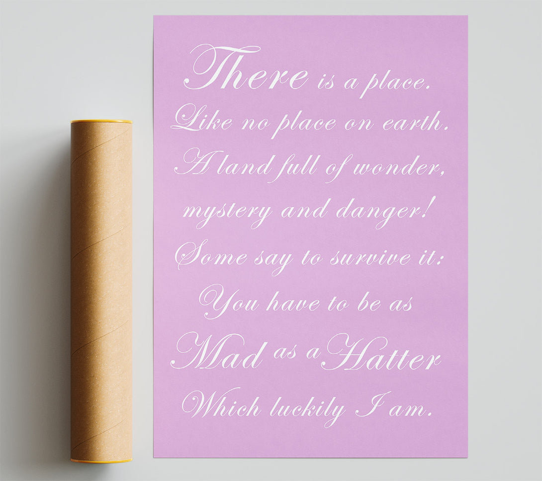 Our Alice In Wonderland As Mad As A Hatter Pink Poster is printed 260 GSM premium lustre paper that offers vibrant colours and exceptional detail.