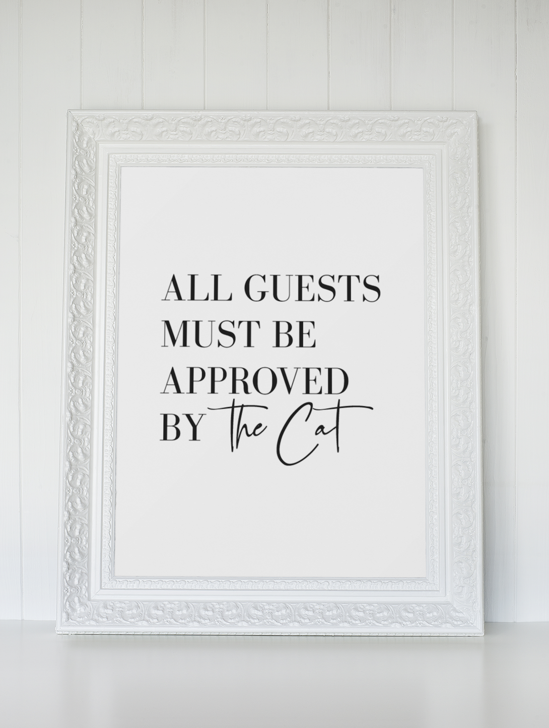 All Guests Must Be Approved By The Cat Animal Wall Decor Simple Print