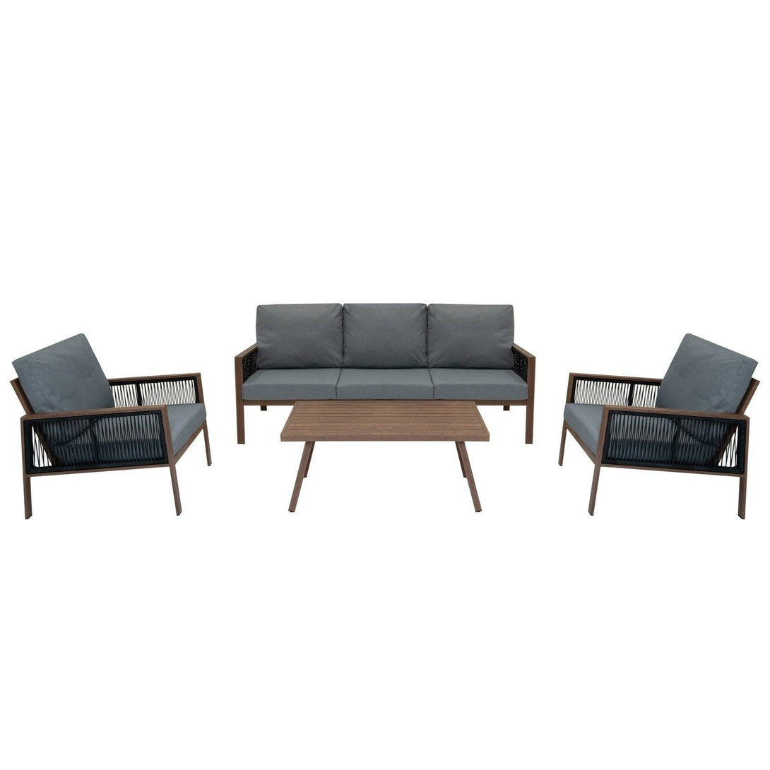 Aluminium 4 Piece Sofa Set - Wood Effect