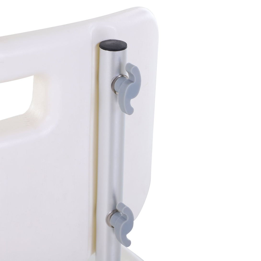 Made for assistance in the shower or bath, this chair from HOMCOM is perfect for the elderly or those who require extra assistance whilst showering or bathing. Made from aluminium, the four legs are resilient to water damage, keeping the chair stable and durable and supporting up to 136kg in weight. Adjustable to eight different heights, this chair helps you find the most comfortable and safe position to sit, with the 'U' shaped plastic seat giving a solid surface to sit. Drainage holes all over the seat prevent water build-up. It's finished with handles to carry easily and non-slip foot pads to keep safely in position.