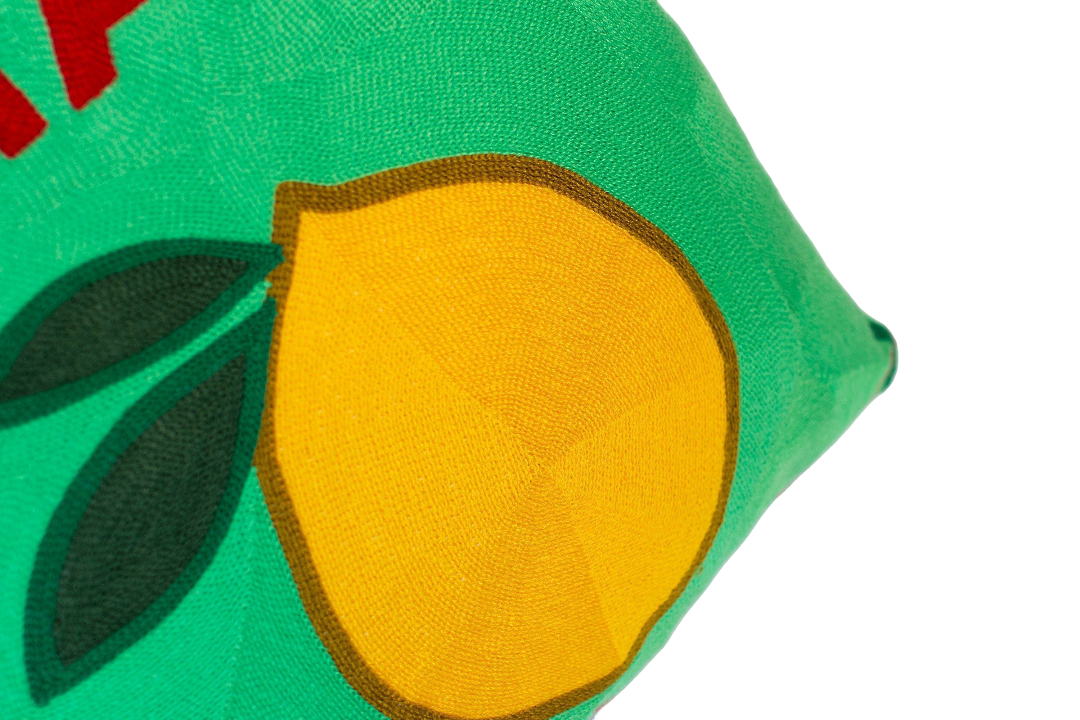 Transport yourself to the glamorous Amalfi coast with this needle-thread cushion. Featuring a statement Lemon design and a luxury green velvet back this cushion would be a great addition to any sofa. Mix and match with other cushions from the collection to make the ultimate statement.