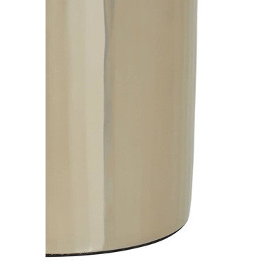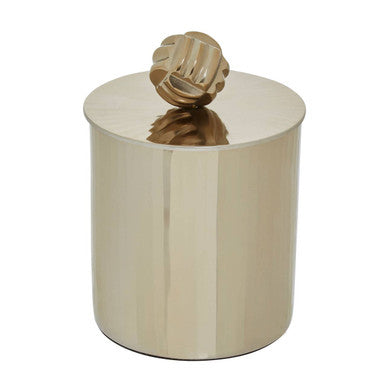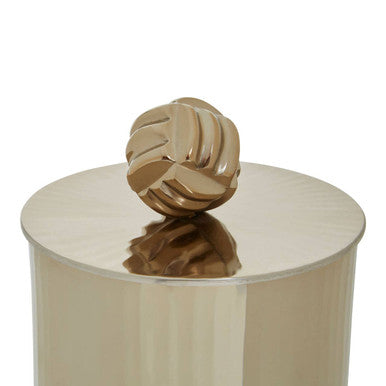 Crafted from subtle, vertically-textured, gold finished enamel, this trinket box has a cylindrical design, matched by a sleek lid which is further adorned with a decorative knob handle. Ideal for storing small items, this trinket box is practical and decorative.