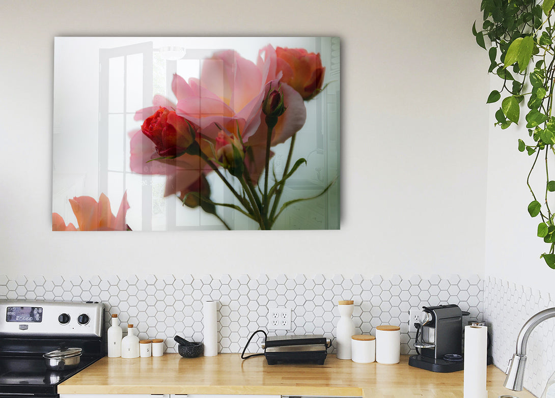 An array of pink flowers acrylic print, UV printed onto 5mm thick acrylic glass. Comes with everything you need to hang on your wall.