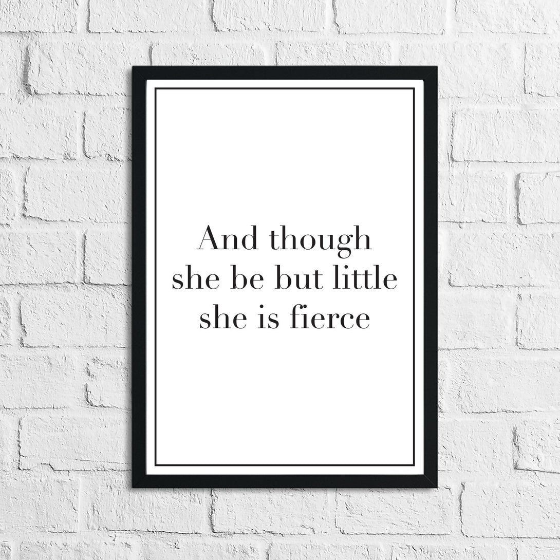 And Though She Be Little She Is Fierce Personalised Children's Room Quote Wall Decor Print (Font/Border Colour Editable)