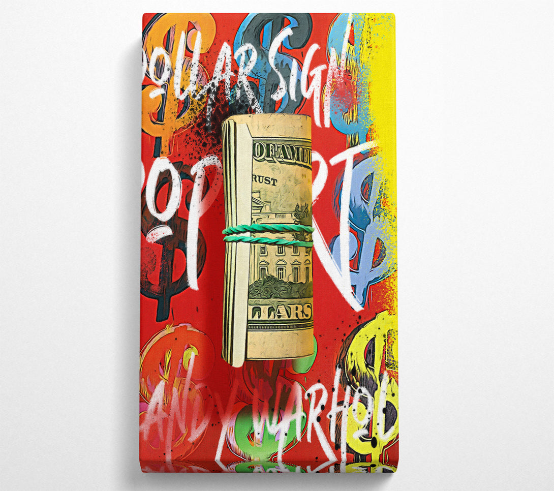 Andy Warhol Dollar Bill Rolled wide canvas, printed on coated polyester canvas. Mounted on to a 44mm box frame, ready to hang.