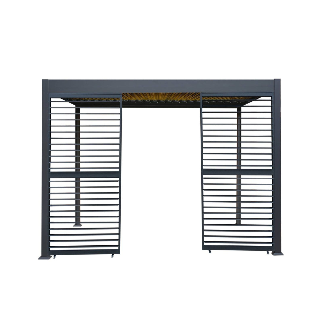 Anthracite Aluminium Pergola With LED Lights & 2 x Shutter Panels - 3m x 3m