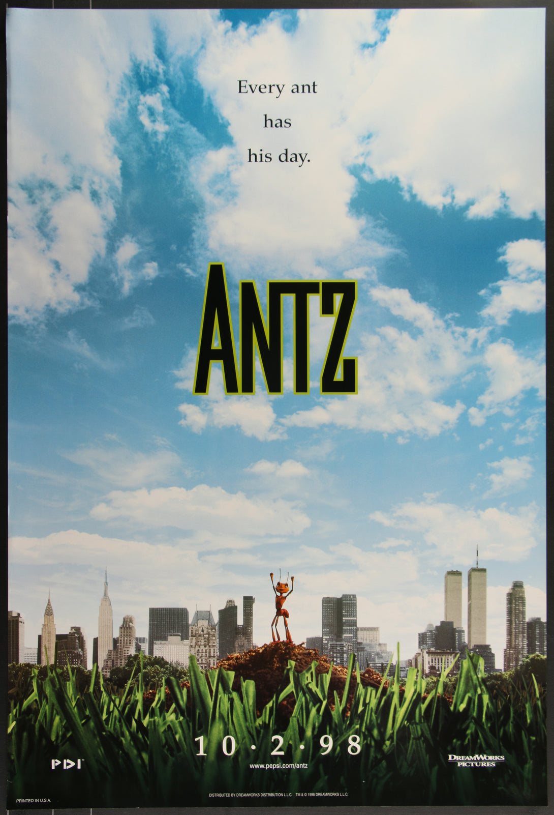 This original US one sheet movie poster for Antz (1998) measures 27" x 40" (69 x 102 cm) and features double-sided printing. It is unfolded with some minor edge wear and creasing. Perfect for fans of the animated family adventure directed by Eric Darnell and Tim Johnson.