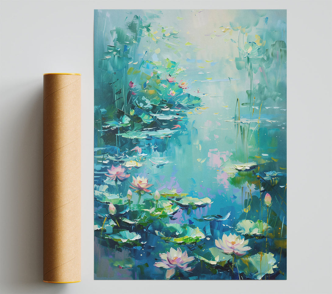Our Aqua Lily Pond Poster is printed 260 GSM premium lustre paper that offers vibrant colours and exceptional detail.
