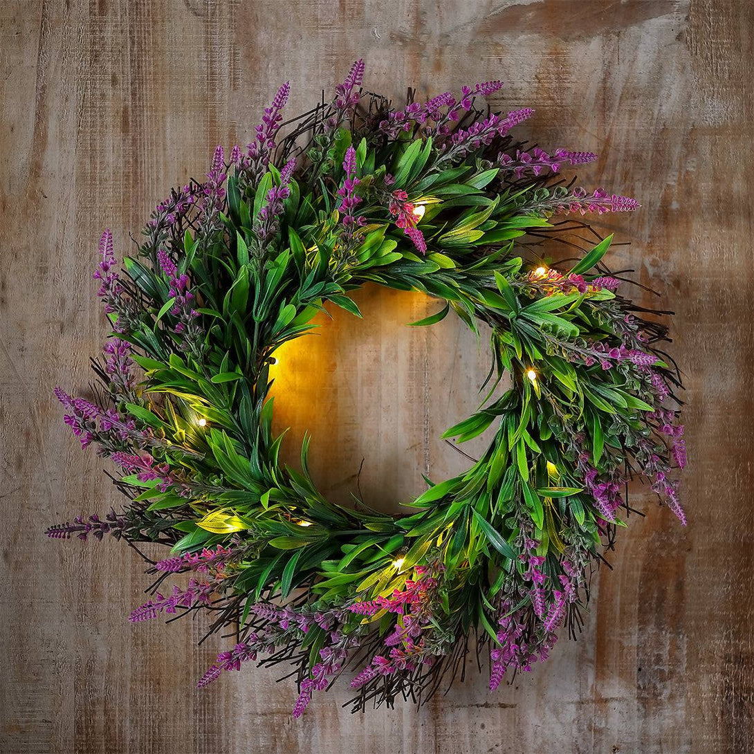 Artificial Lavender Solar Garden Light Wreath Decoration 12 Warm White LED - 36cm by Bright Garden