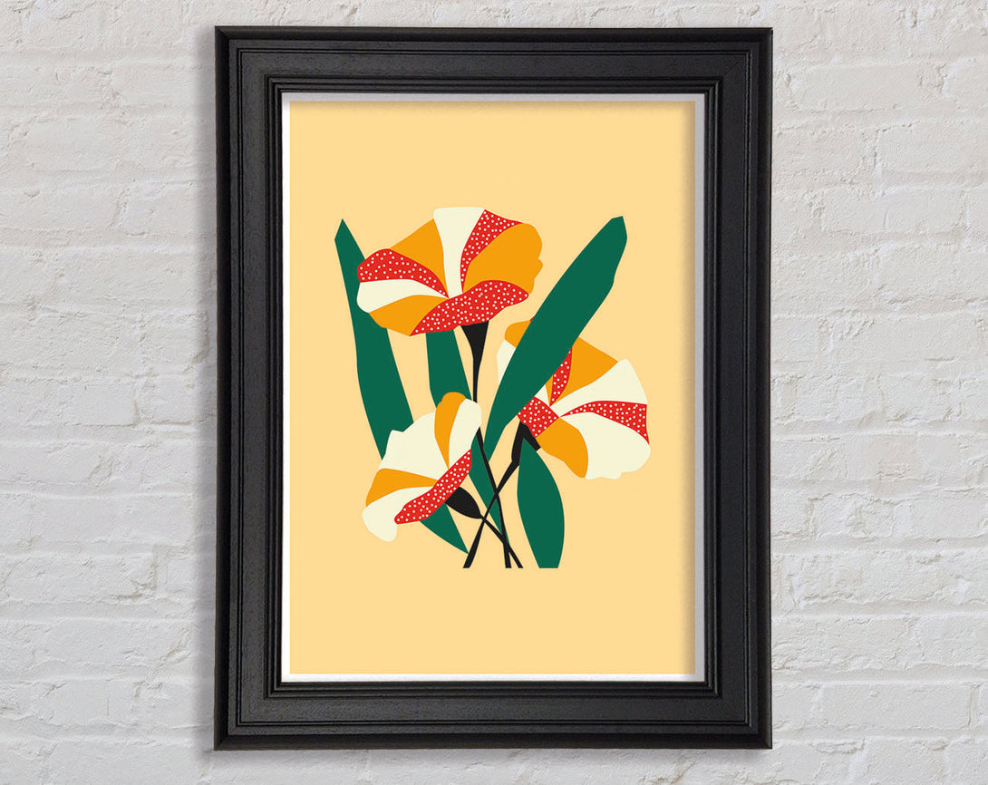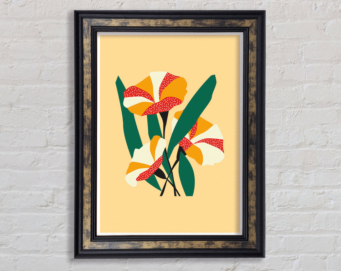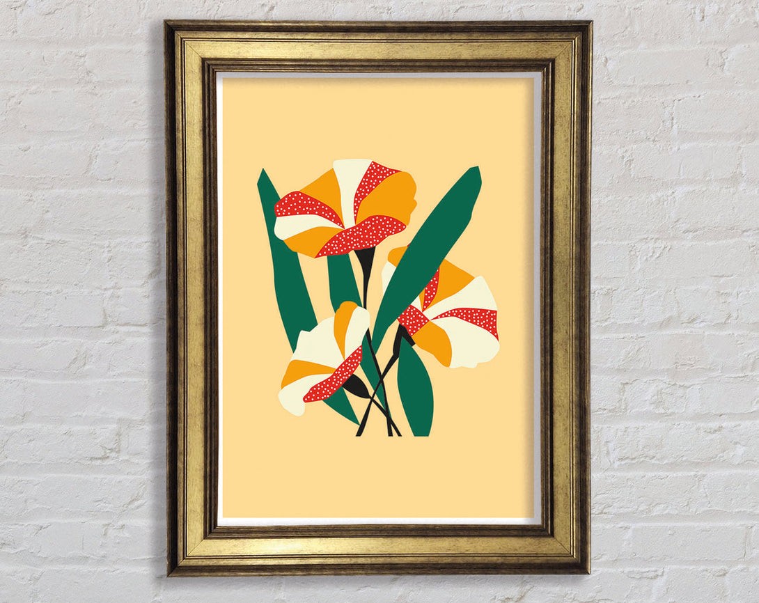 Artistic Bohemian Flowers And Leaves Beige Framed Print