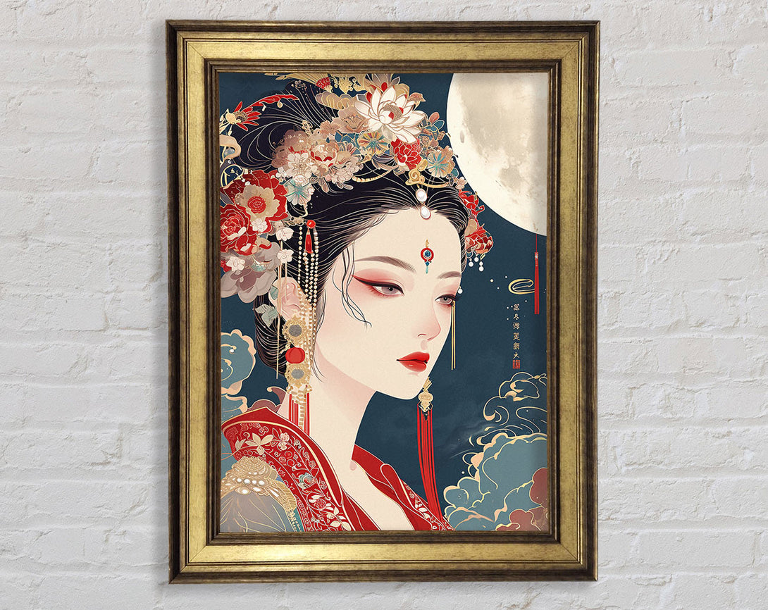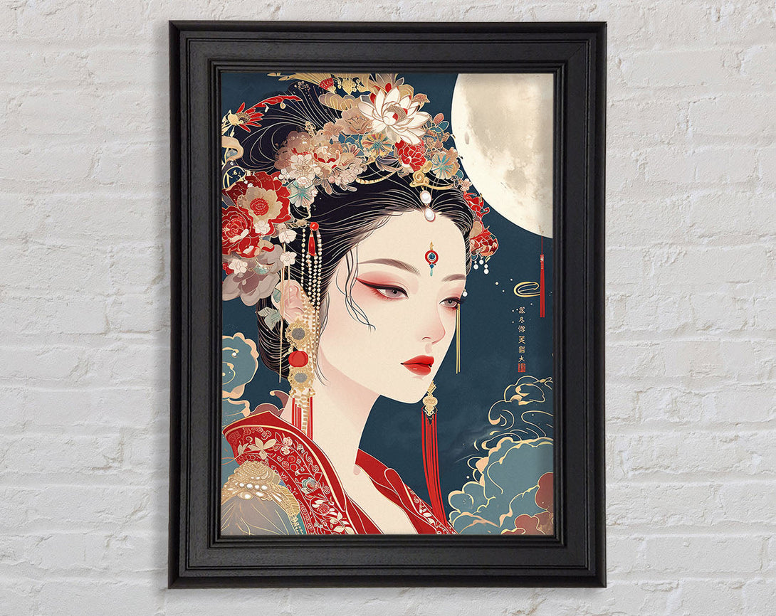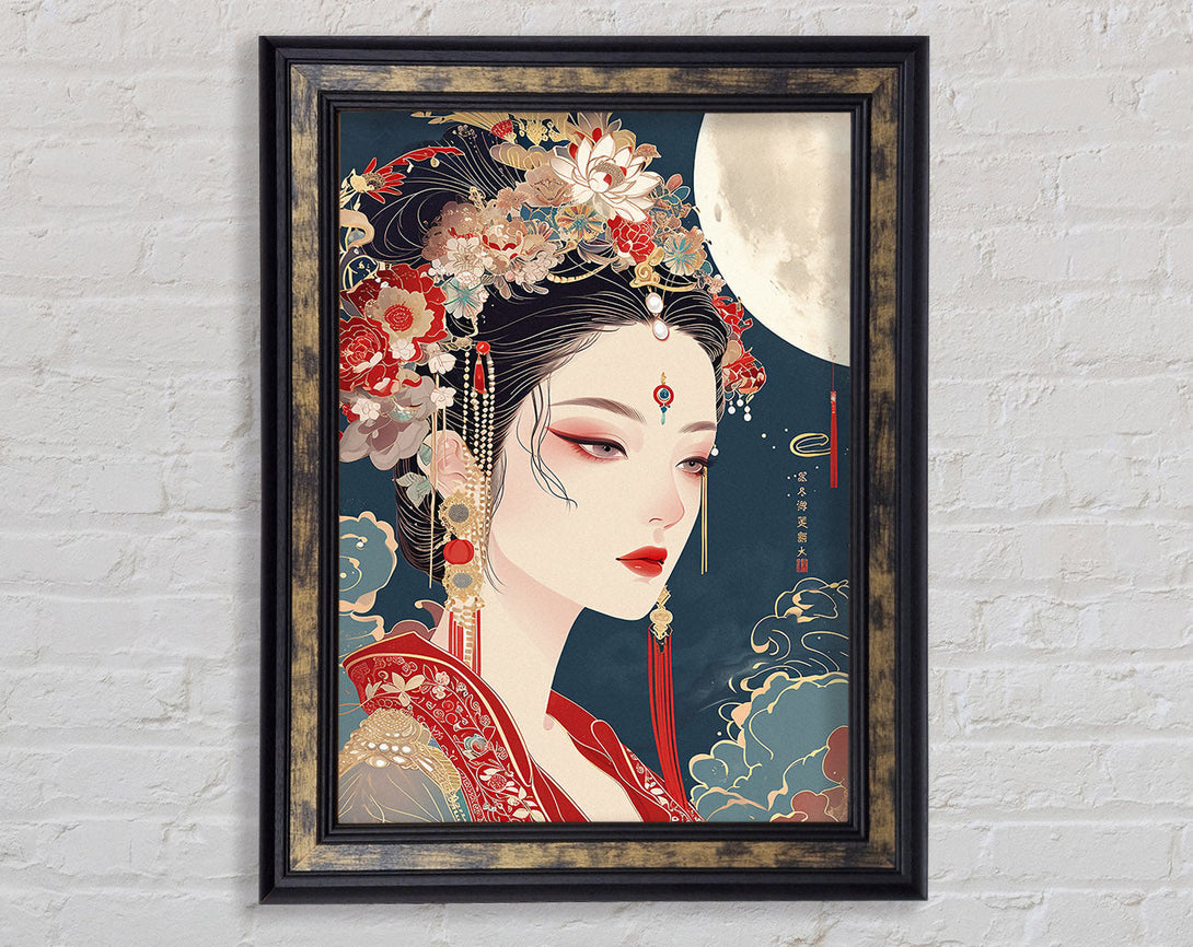 Asian Woman Moon Framed Print