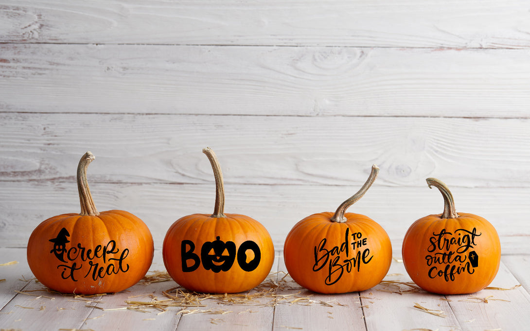 Creep It Real, Boo, Bad To The Bone, Straight Outta Coffin, You Are Boo-tiful, Bow Down Witches, Bad & Boo-Tie, Squad Ghouls, Boo Yah, Get Spooky, Under Your Spell, Trick or Trick, Halloween, Something Wicked, Hocus Pocus, Spooky Vibes, Sweet Spooky, Be Witched, Hello Pumpkin, Were Going Haunting |
