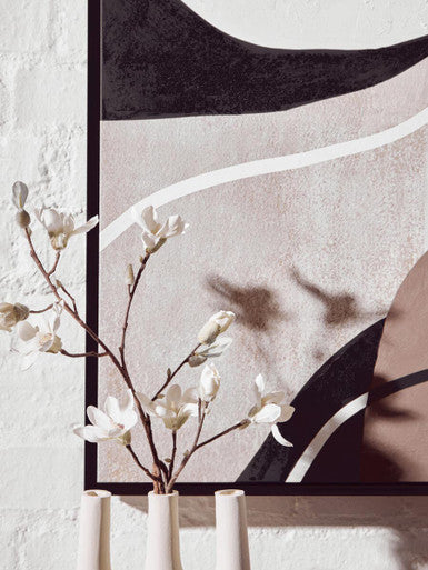 Portraying an artistic combination of earthy hues and asymmetrical brush strokes, the Astratto set of two wall art offers sophistication and elegance to living spaces. Its primed with a sleek black pine wood frame further accentuating the light tones.