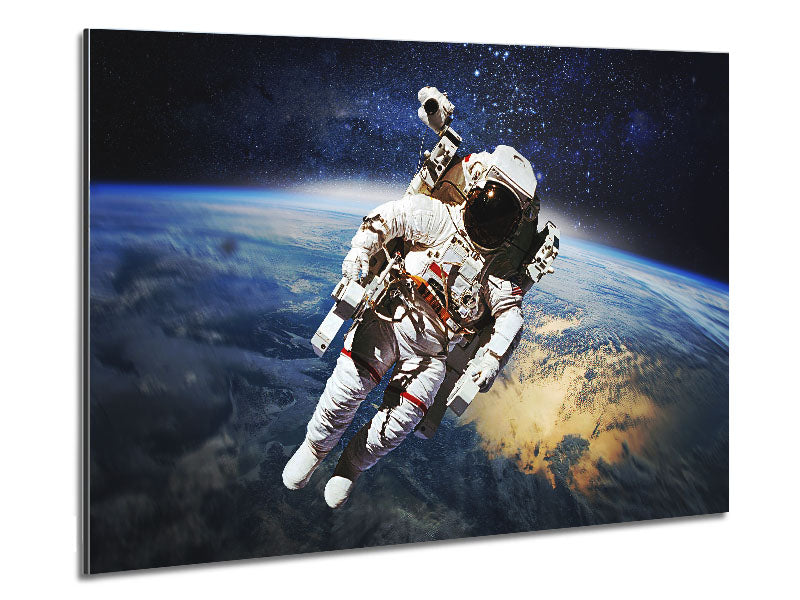 Astronaut Above The Earth Printed on brushed aluminium dibond. A modern way to display art and easy to maintain.