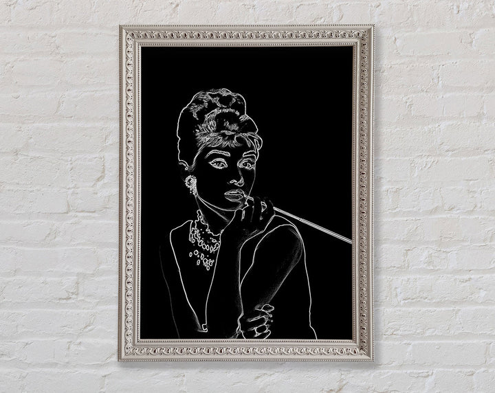 Elevate your home decor with the Audrey Hepburn Black Framed Print, a timeless piece of framed art that captures the elegance and sophistication of the iconic actress. Available in six sizes, from small to oversized, this print caters to any space, big or small. Choose from a variety of colors to match your interior style perfectly. Each item is handmade in the United Kingdom, ensuring top-notch craftsmanship and attention to detail. Ready to hang upon arrival, this framed art saves you time and effort. Bring a touch of classic Hollywood glamour into your home with this exquisite Audrey Hepburn print.