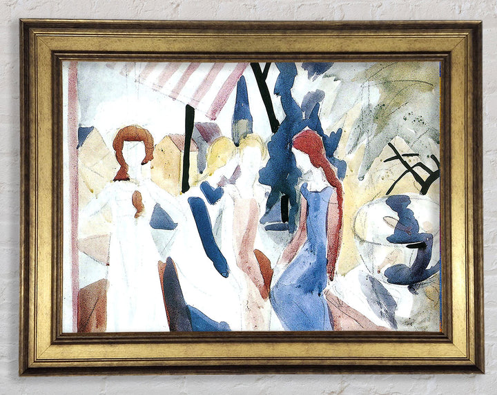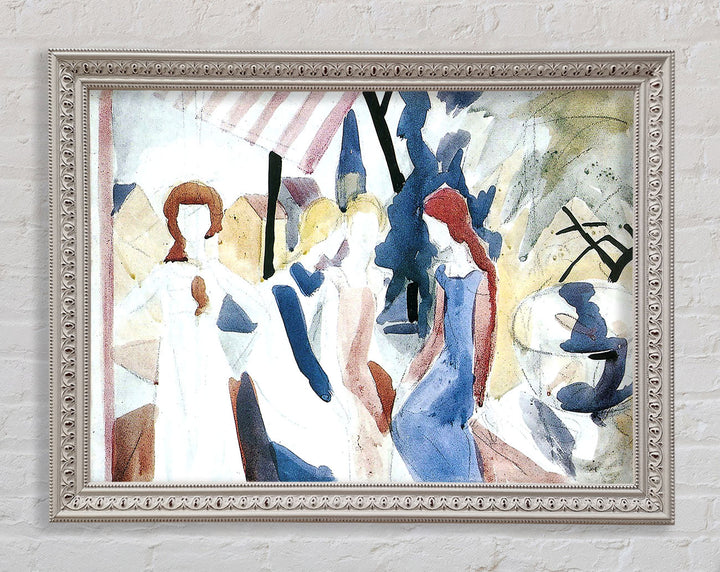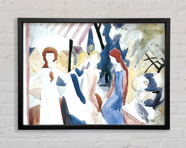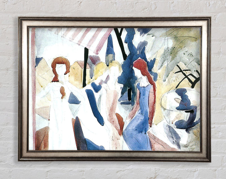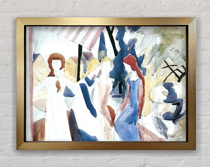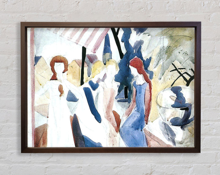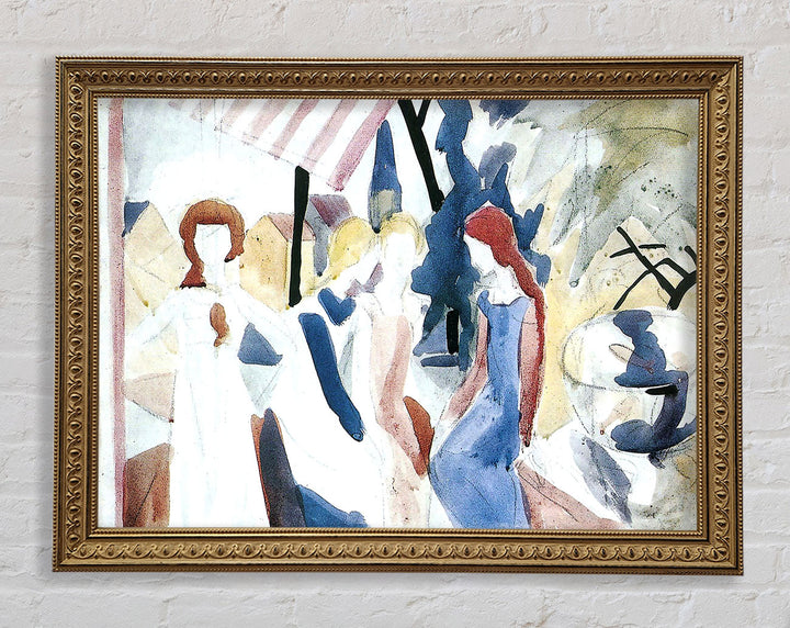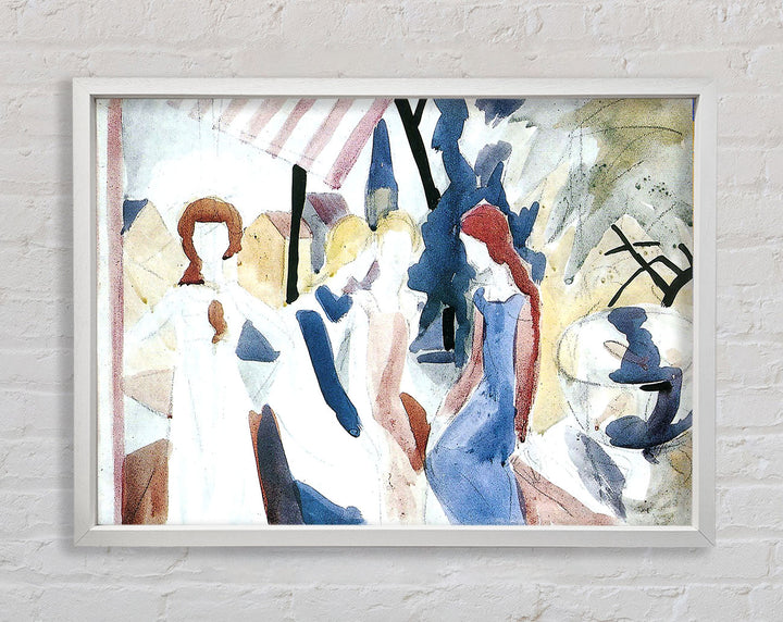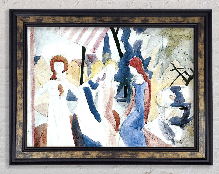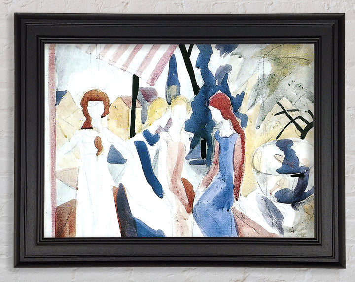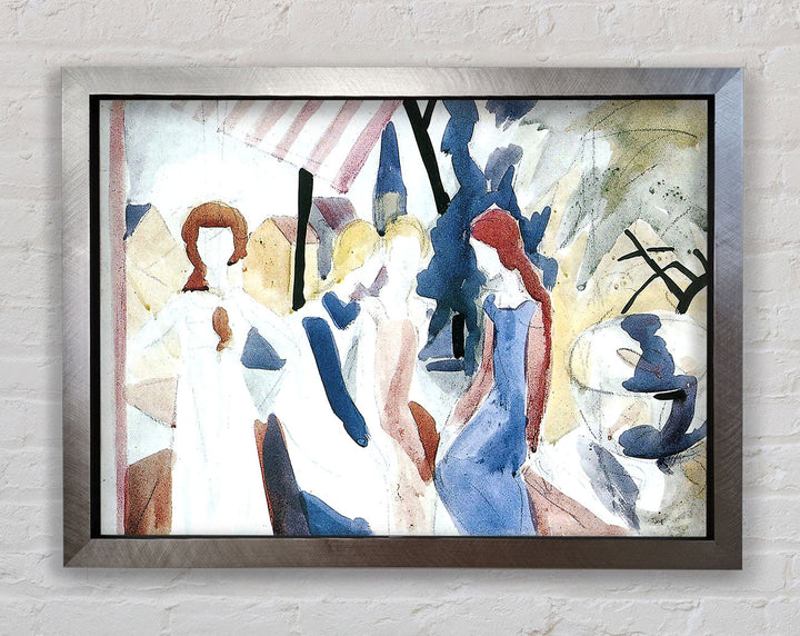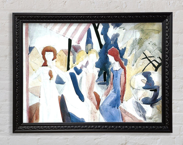 Introducing the stunning August Macke "Four Girls On Altane" framed art print, a masterpiece that brings elegance to any space. This beautiful framed art captures the essence of Macke's unique style and vibrant colors. Available in six different sizes, from small to oversized, it fits perfectly in any room. Choose from a variety of colors to match your decor.