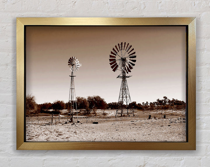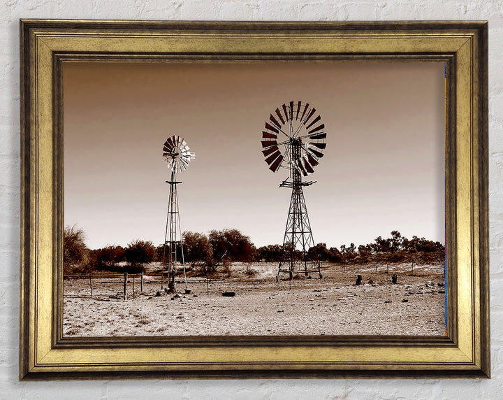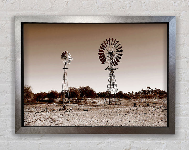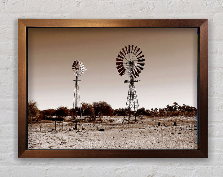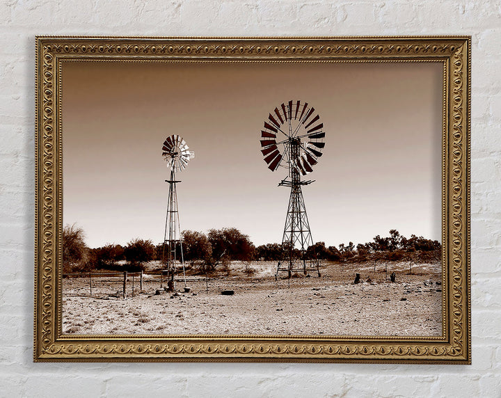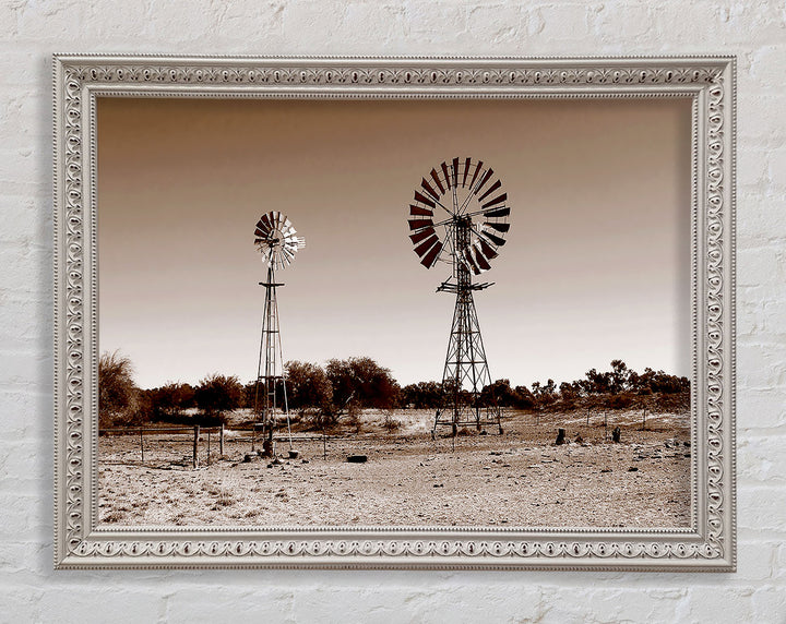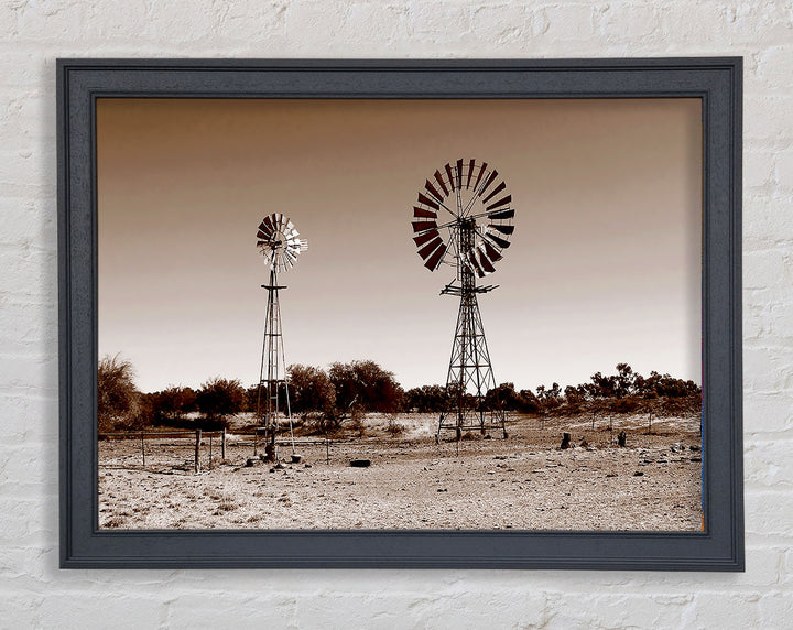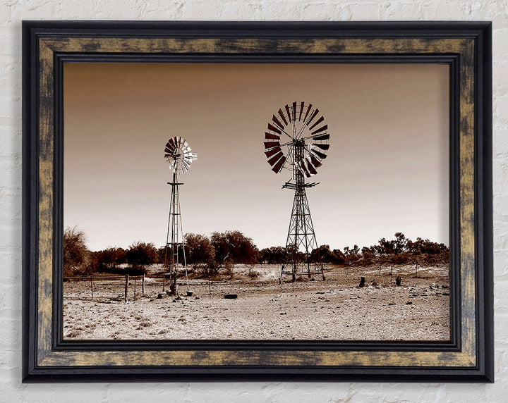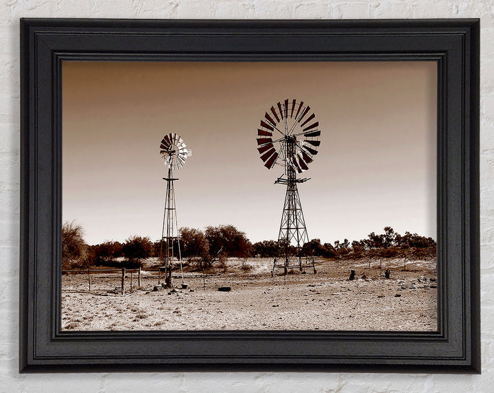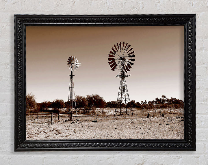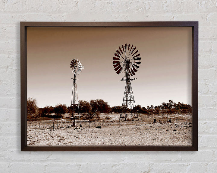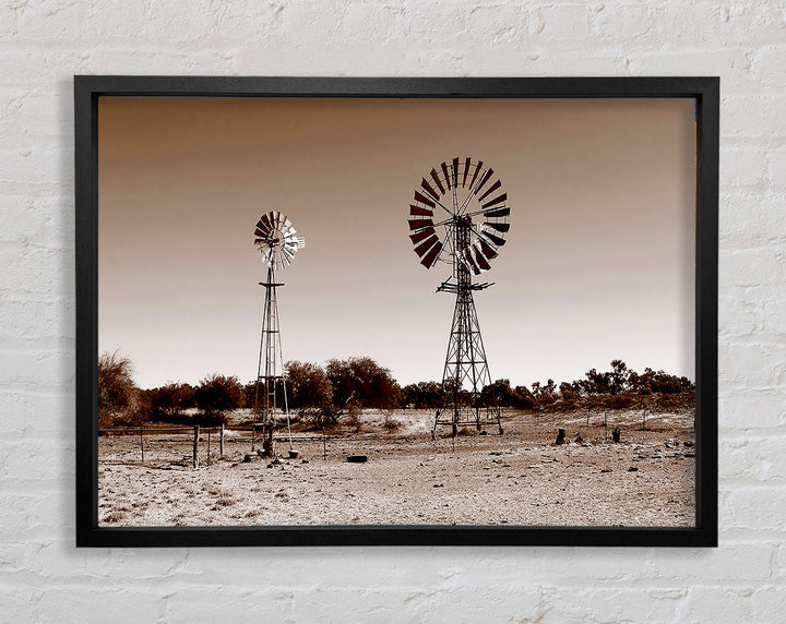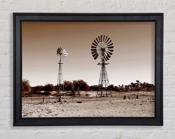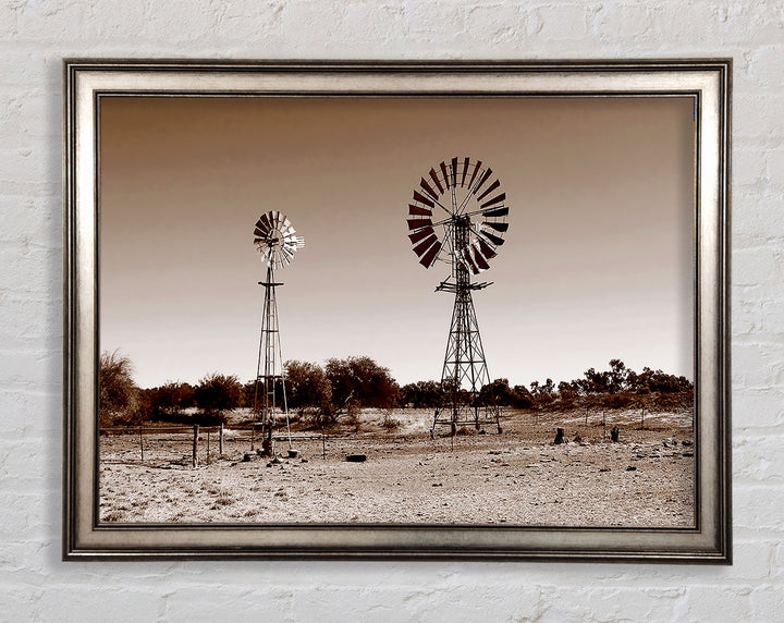 Australian Windmills Sepia Framed Print