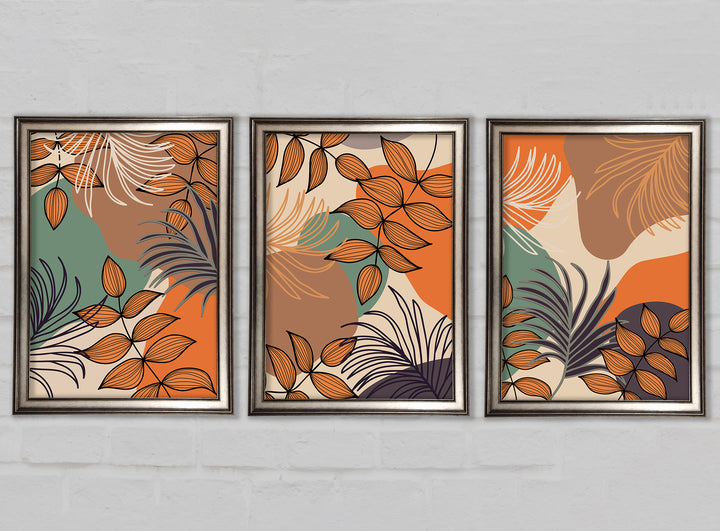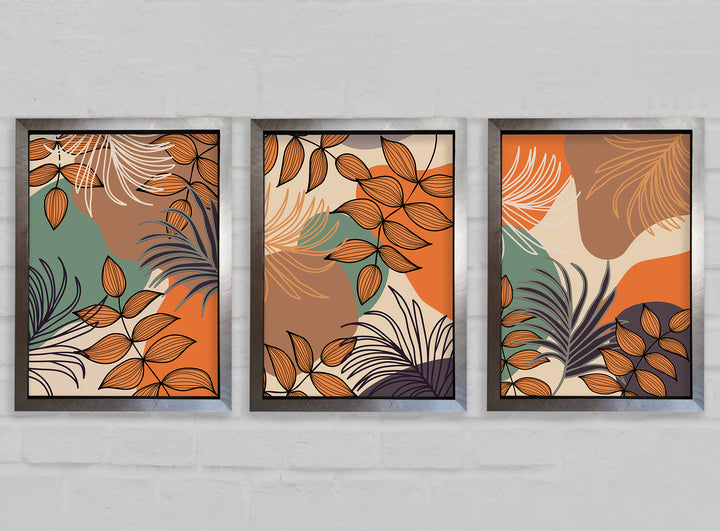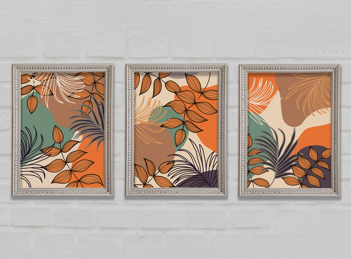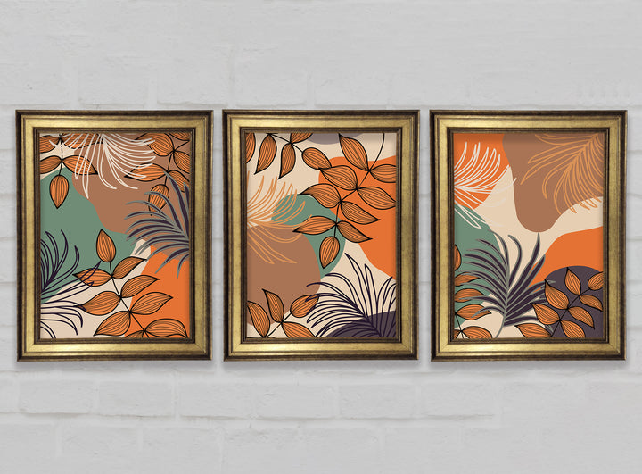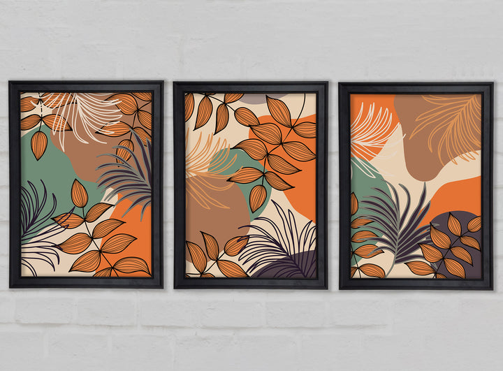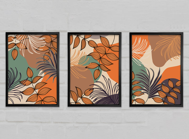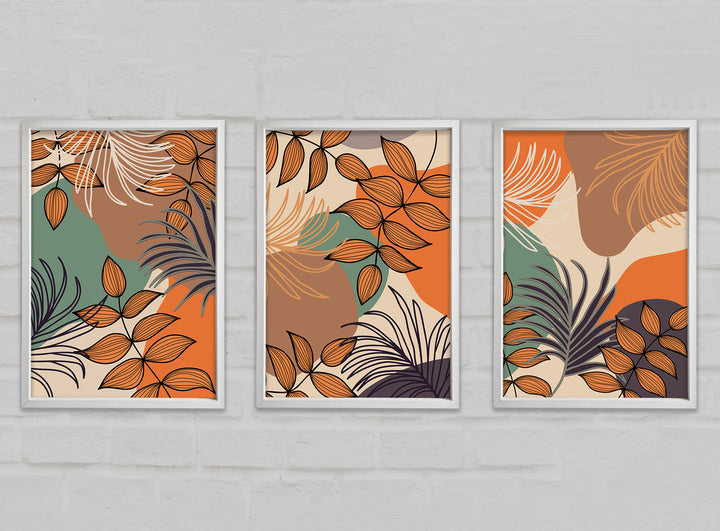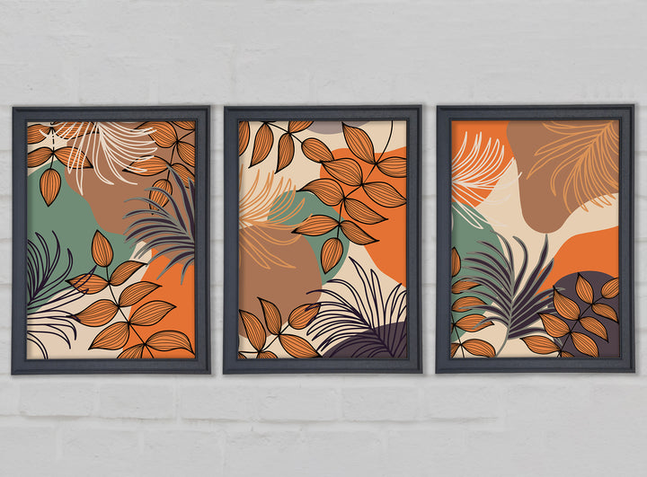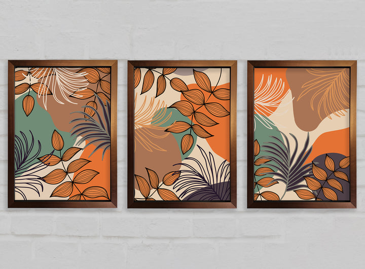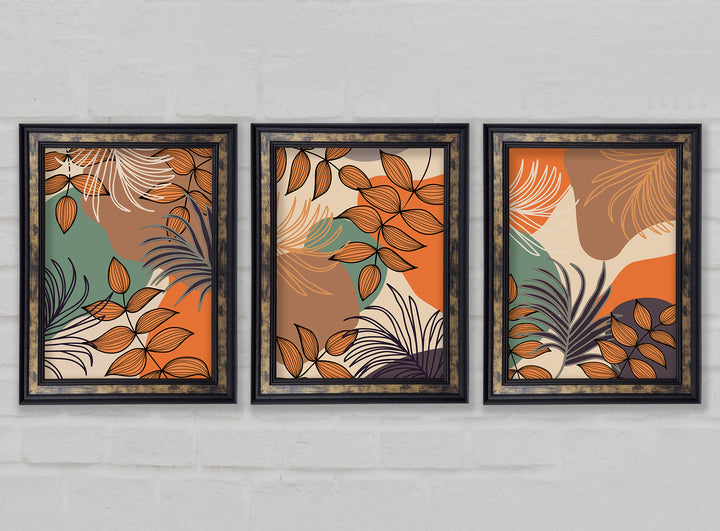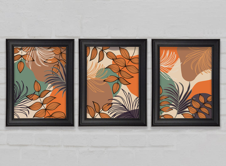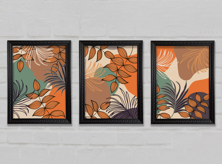 Autumn Bloom Flowers set of 3 framed print wall art, available in mutiple frame colours. Ready to hang from the box and handmade in the United Kingdom.