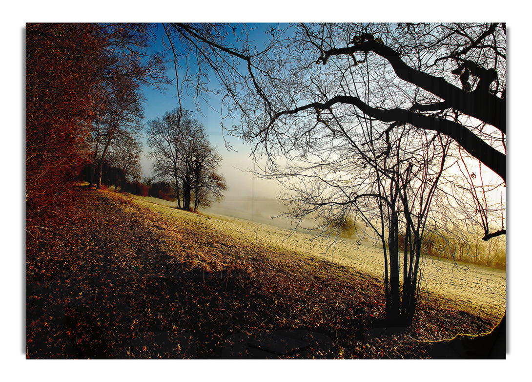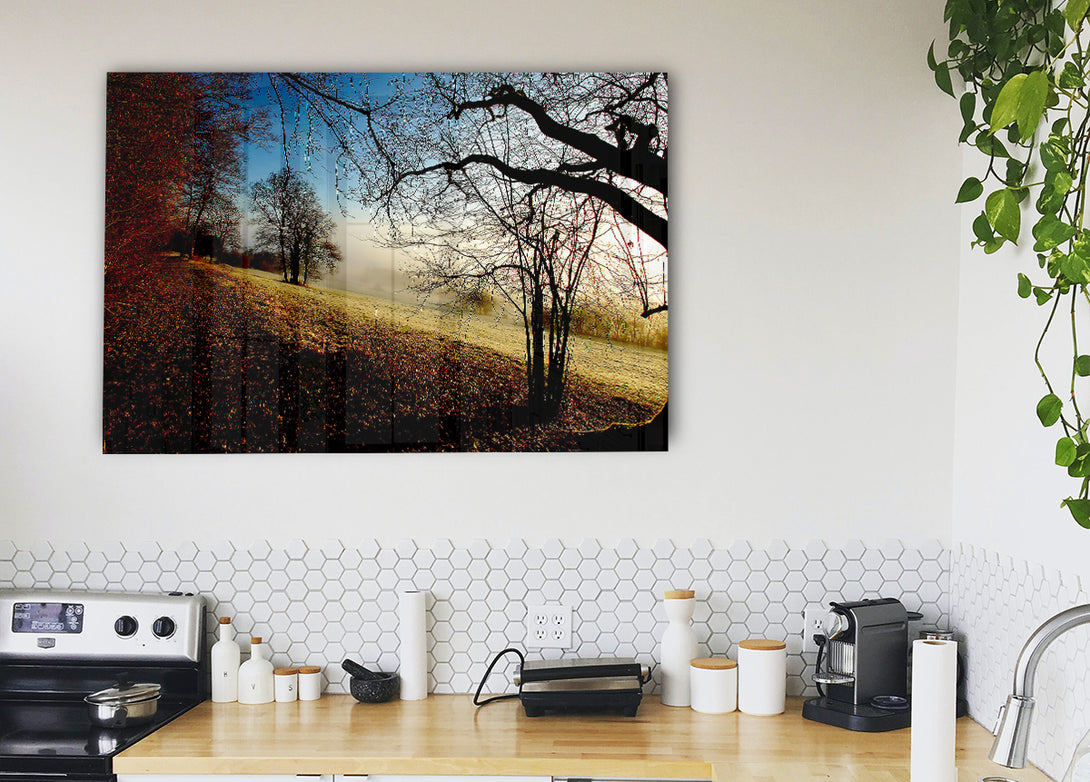 Autumn Foggy Morning acrylic print, UV printed onto 5mm thick acrylic glass. Comes with everything you need to hang on your wall.