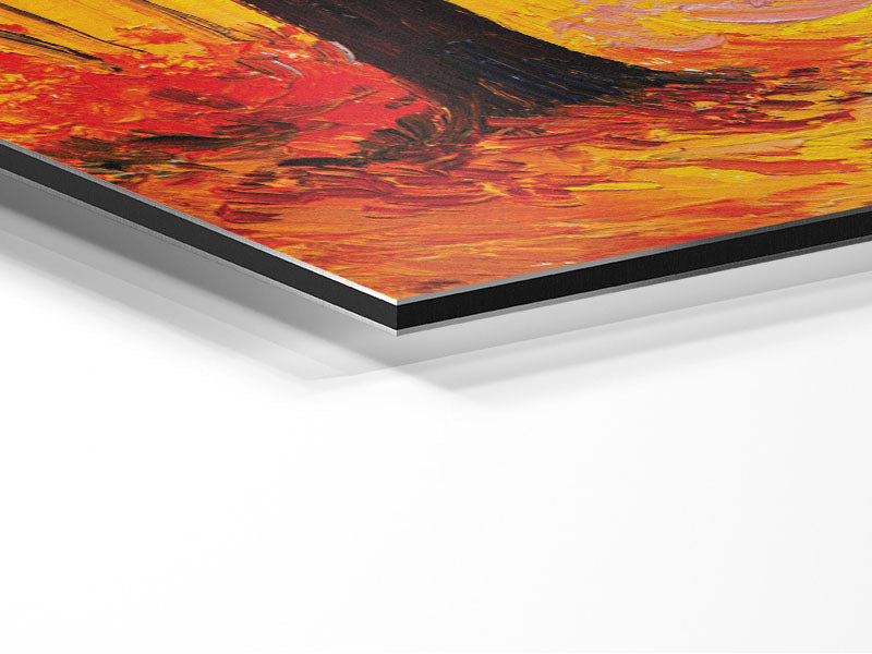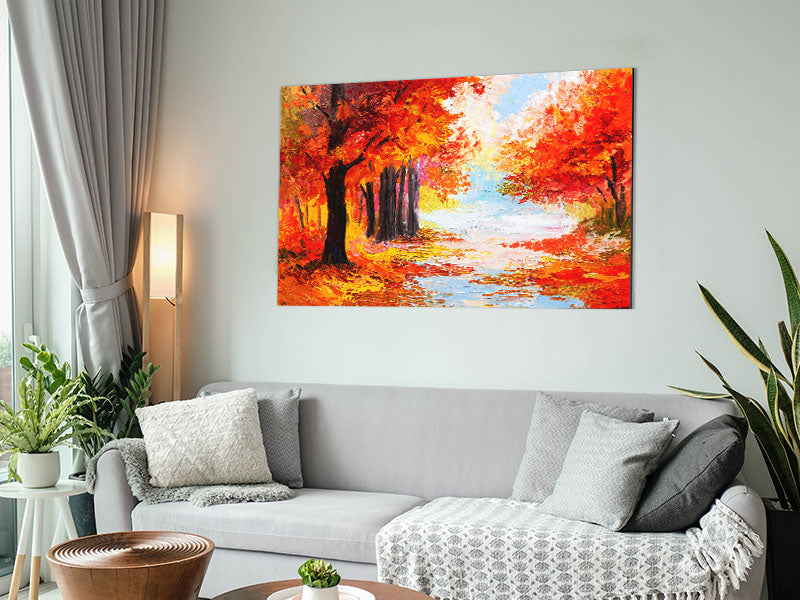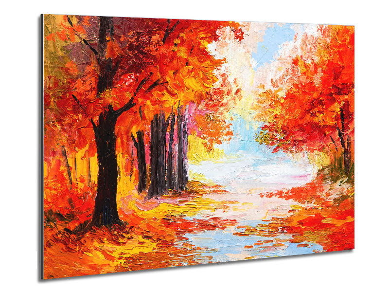 Autumn Orange Path Printed on brushed aluminium dibond. A modern way to display art and easy to maintain.