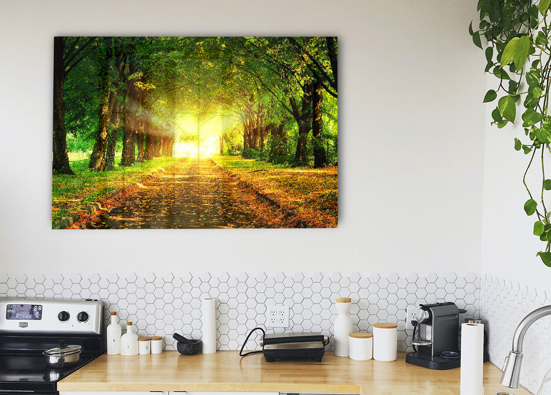 Autumn Path acrylic print, UV printed onto 5mm thick acrylic glass. Comes with everything you need to hang on your wall.