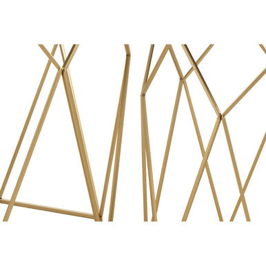 This set of nesting tables has hexagonal mirrored tops which create a strikingly reflective accent. Finished in a warm champagne colour, their linear bases create a light and airy finish. The smaller table nests inside the large to save floor space.