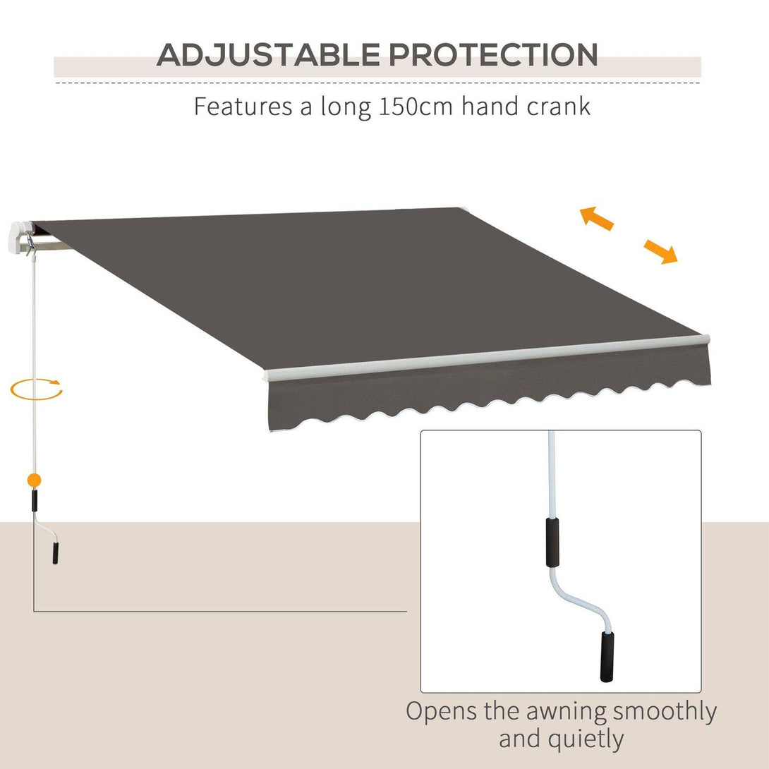 With a thick sun-shielding canopy fixed on an aluminium frame, this awning from Outsunny will give you all the shade you need this season. The manual design means you can set it up wherever needed - whether it's above a door or window, and it easily mounts onto your chosen surface with all accessories included in the package. Finished with a crank handle for easy operation. It's time to enjoy the beauty of the Summer more than ever before.