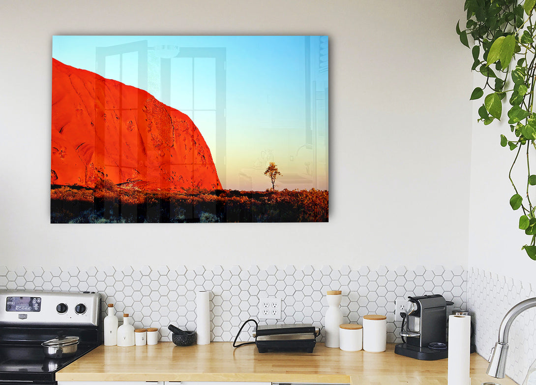 Ayres Rock Morning Glow acrylic print, UV printed onto 5mm thick acrylic glass. Comes with everything you need to hang on your wall.