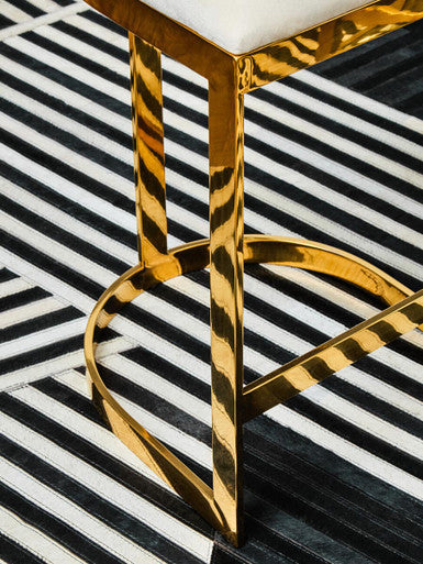The Azalea bar stool features a plump seat upholstered in ivory velvet supported by a curving inner backrest for added comfort. The sturdy stainless steel frame in a gold finish lends an arching accent to the d?cor with its sleek fixture.
