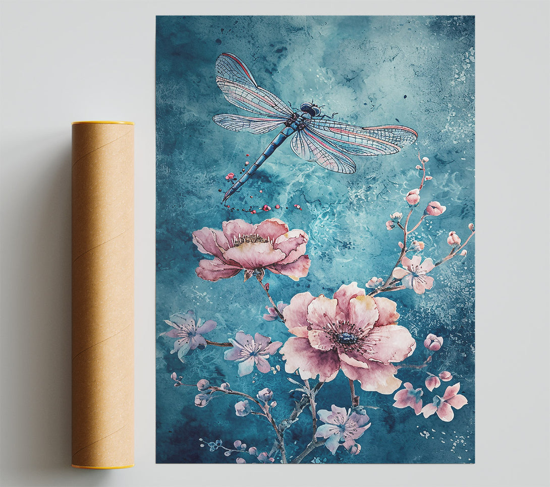 Azure Dragonfly Bloom Poster